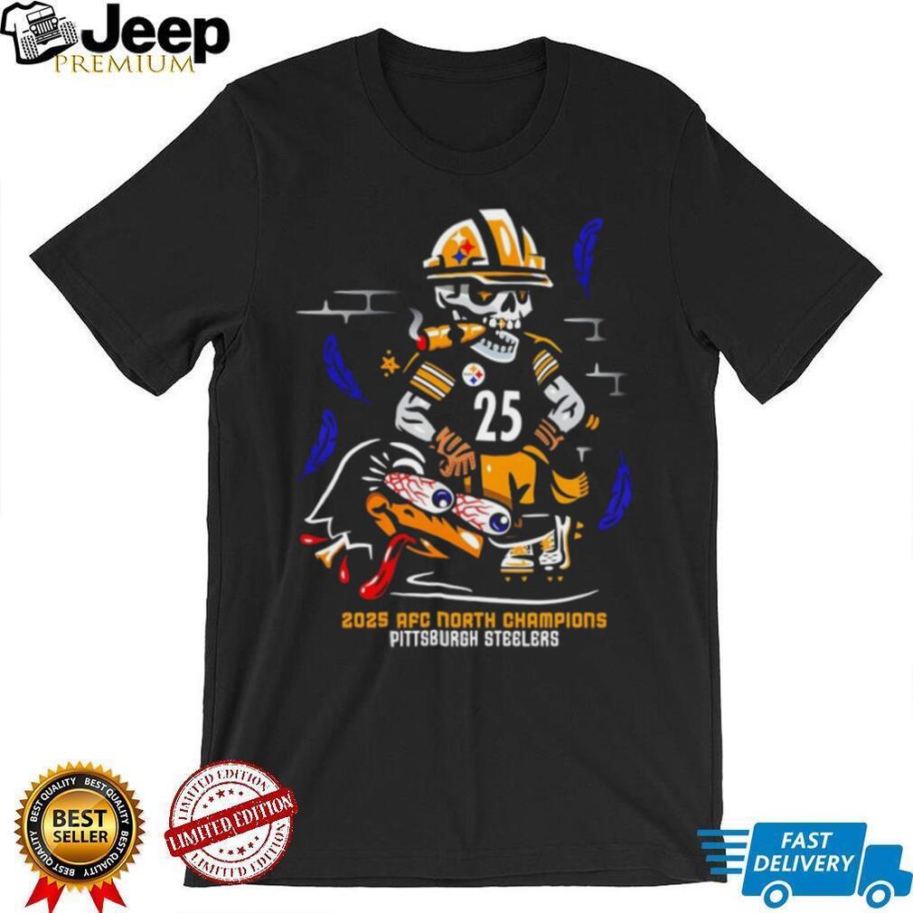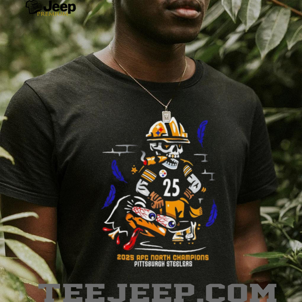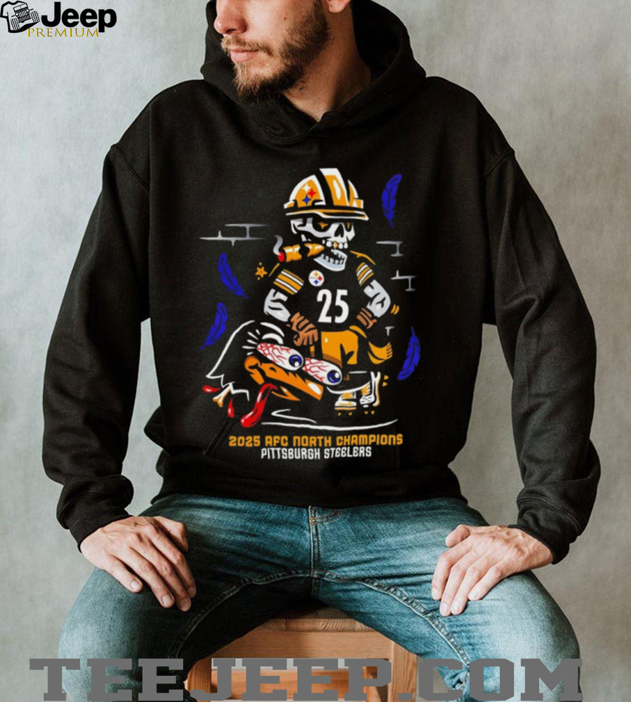 ()2025 AFC North Champions Pittsburgh Steelers skeleton cigar shirt, Sport T-shirt and Funny T-shirt
