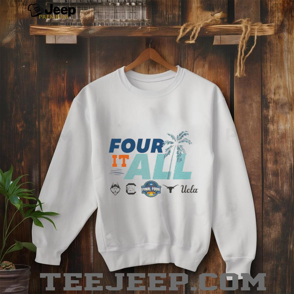 The “2025 NCAA Women’s Basketball March Madness Final Four Group Four It All shirt” is designed to commemorate a specific group within the 2025 NCAA Women’s Basketball March Madness Final Four. This shirt serves as a celebratory item for fans who were particularly invested in “Group Four,” marking a significant moment in the tournament and highlighting the teams that competed within that specific bracket. The phrase “It All” suggests a culmination of the group’s journey, potentially referencing a hard-fought victory or a particularly memorable series of games. The design would prominently feature the year “2025,” the phrase “Final Four Group Four,” and the phrase “It All.”