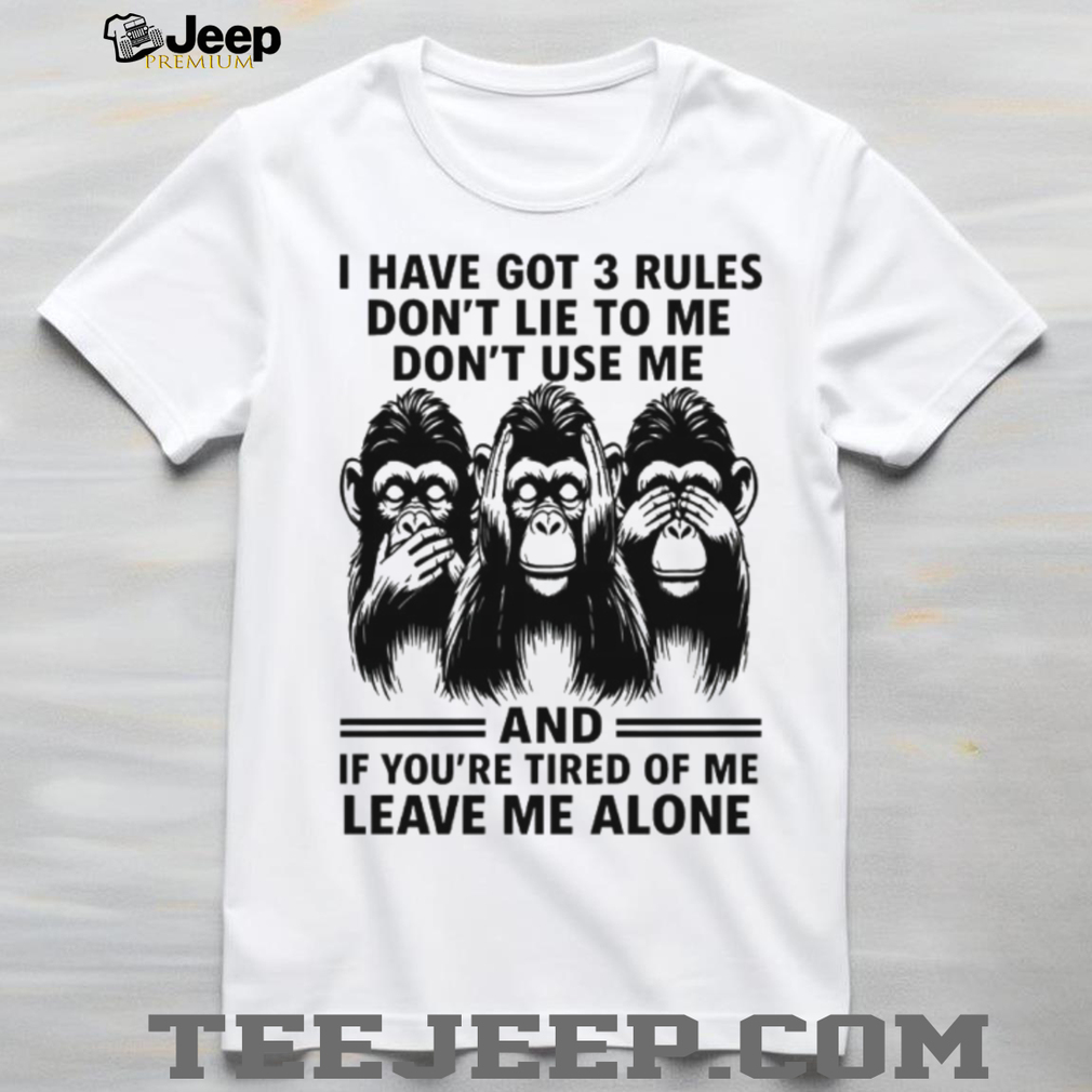 ()3 Rules Don’t Lie Use Me or Leave Me Alone Chimpanzee T Shirt, Treat yourself or make a great gift for your loved ones