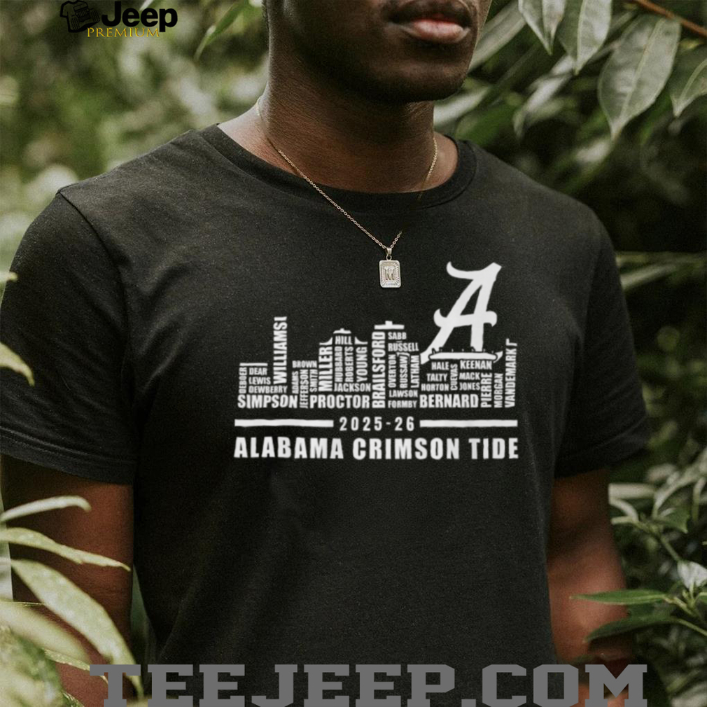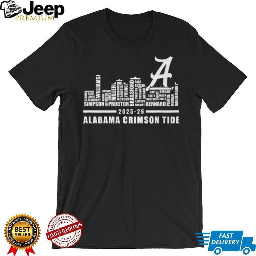 Alabama Crimson Tide 2025 26 Roster Skyline Word Art Shirt, Treat yourself or make a great gift for your loved ones