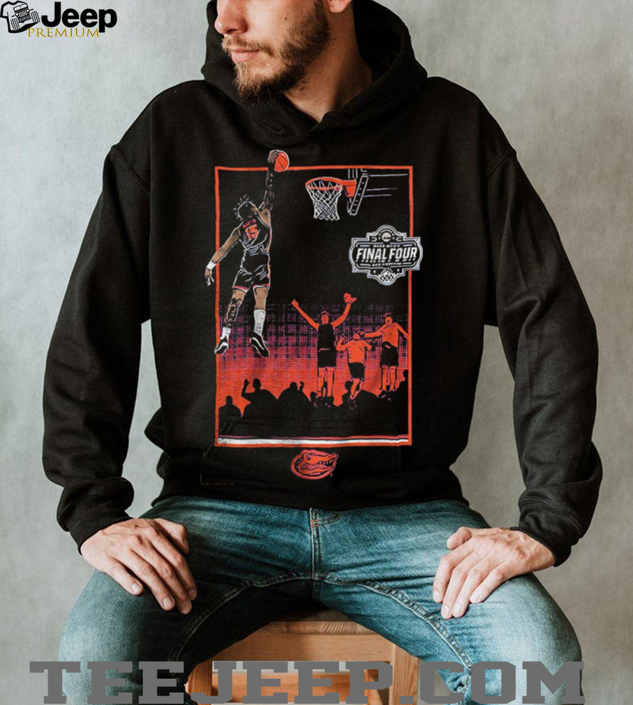 Wearing this t-shirt allows Florida Gators fans to relive and celebrate a pivotal moment from their team’s Final Four run. A highlight reel dunk in such a high-stakes game would undoubtedly be a source of immense excitement and pride for the fanbase. The shirt serves as a visual representation of that energy and the thrill of competing at the highest level of college basketball. It’s a way for supporters to showcase their team spirit and to remember Alijah Martin’s electrifying play that contributed to their Final Four experience. The dunk becomes a symbol of the team’s determination and the intensity of the tournament.