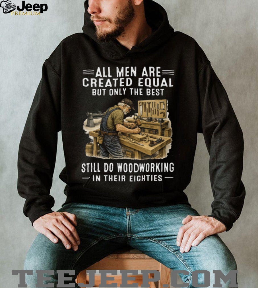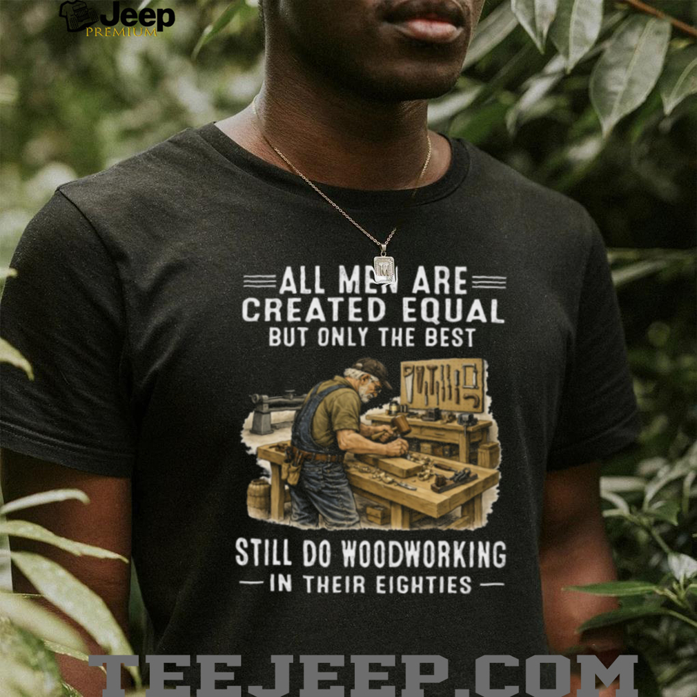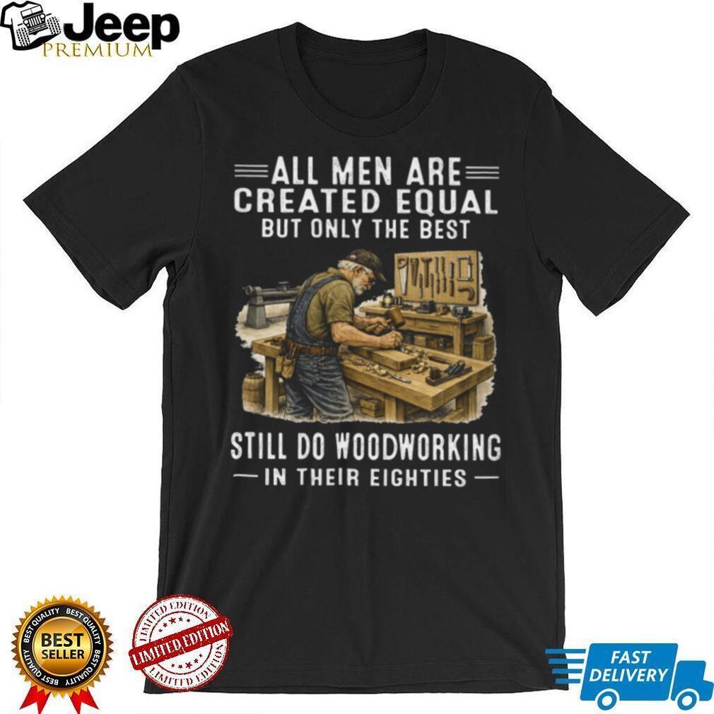()All Men Are Created Equal Only The Best Still Do Woodworking In Their Eighties T Shirt, Treat yourself or make a great gift for your loved ones