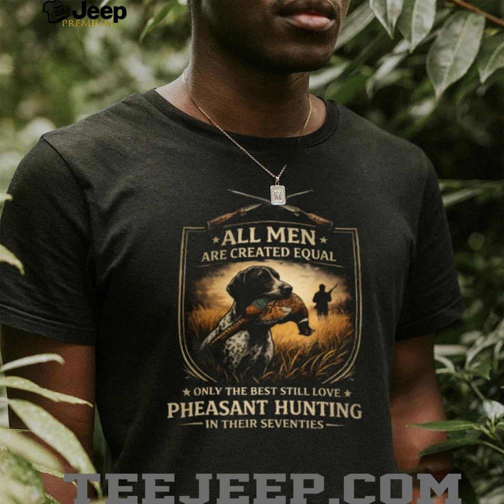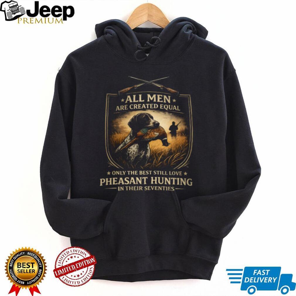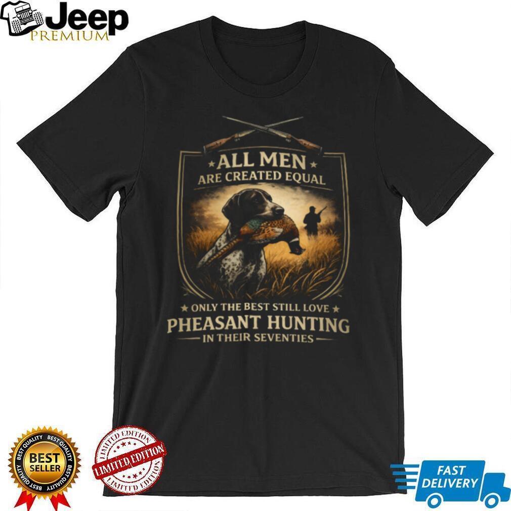 ()All Men Created Equal Best Still Love Pheasant Hunting In Their Seventies T Shirt, Treat yourself or make a great gift for your loved ones