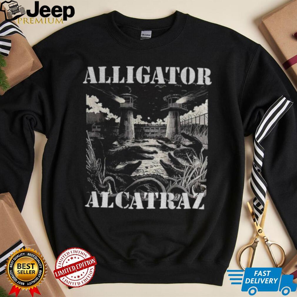 By juxtaposing the alligator with Alcatraz, the shirt draws a direct comparison