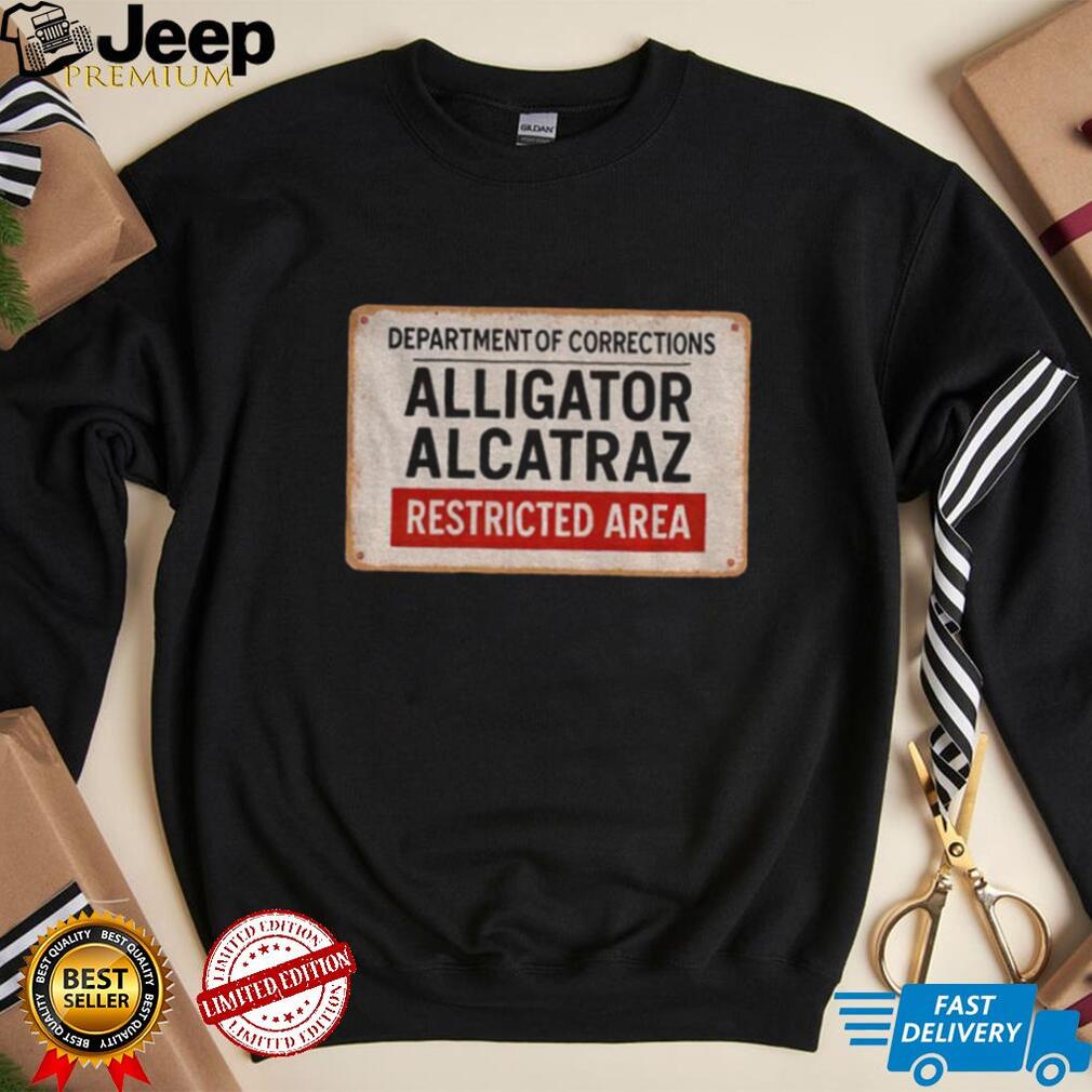The “Alligator Alcatraz Restricted Area Department of Corrections shirt” is a robust blend of **prominent entities** and **semantic keywords** that effectively communicate a message of strict control and unbreachable boundaries. The **alligator**, a powerful predator, symbolizes an inherent danger and a natural, untamed force, suggesting a formidable barrier. This is paired with **Alcatraz**, the legendary “prison island,” a **closed entity** synonymous with maximum security and the near impossibility of escape. The phrases “**Restricted Area**” and “**Department of Corrections**” leave no doubt about the shirt’s theme: a firm declaration of legal authority and a warning against trespass. This combination of natural deterrence, historical confinement, and official enforcement creates a **unique and rare property** in apparel design. It offers a form of **personal commentary** that appeals to those who value order, security, and a direct approach to boundaries and consequences.