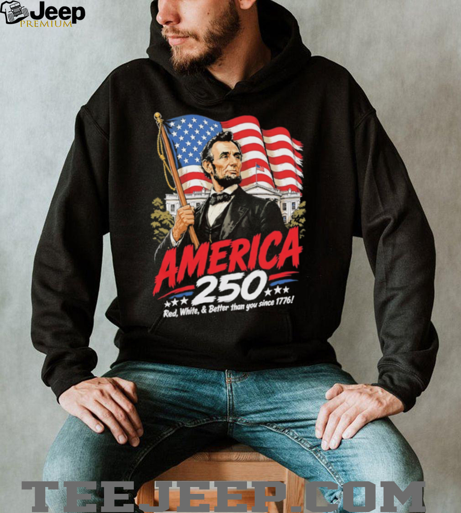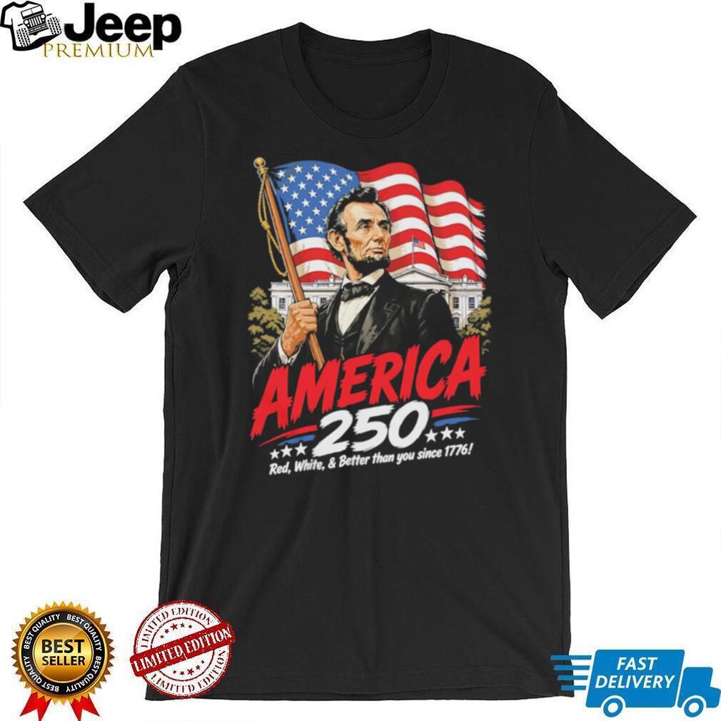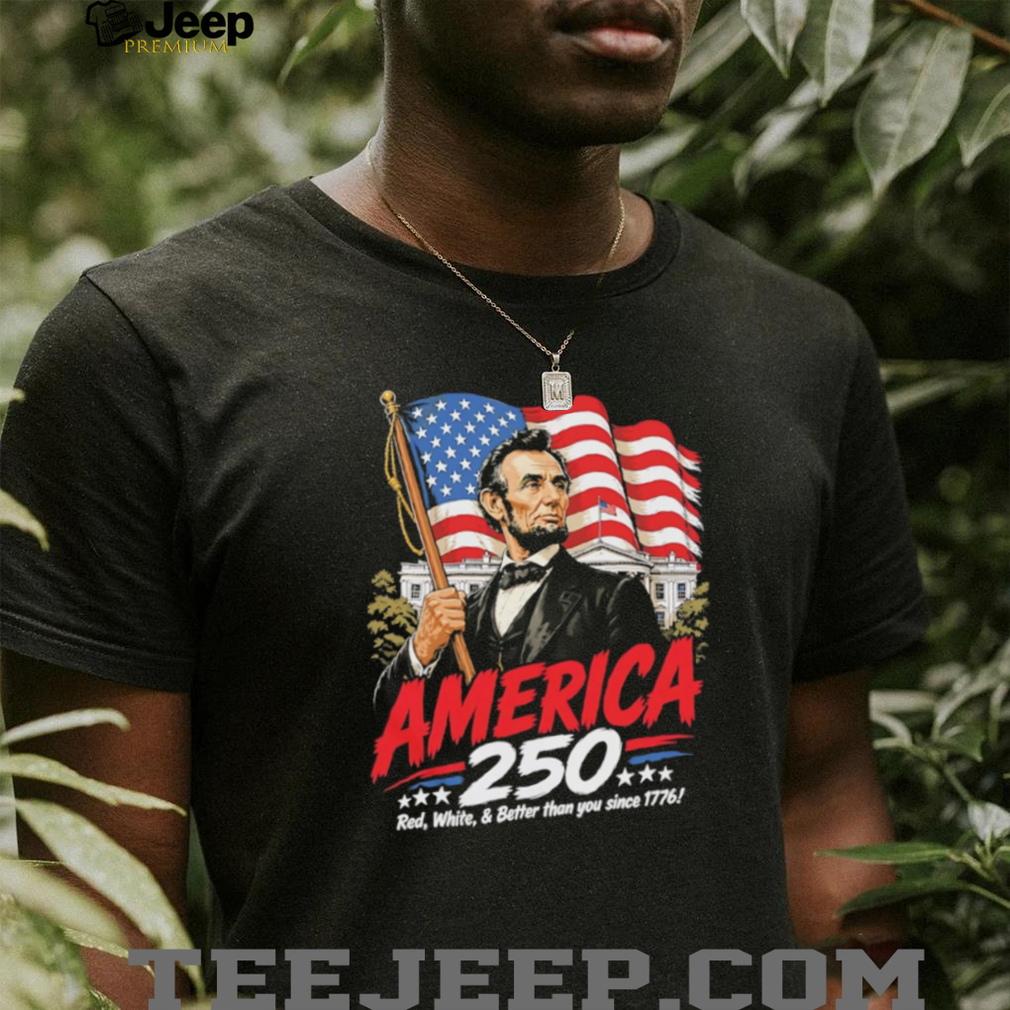 👕 About America 250 Semiquincentennial Abraham Lincoln Patriotic 1776 USA Flag T Shirt