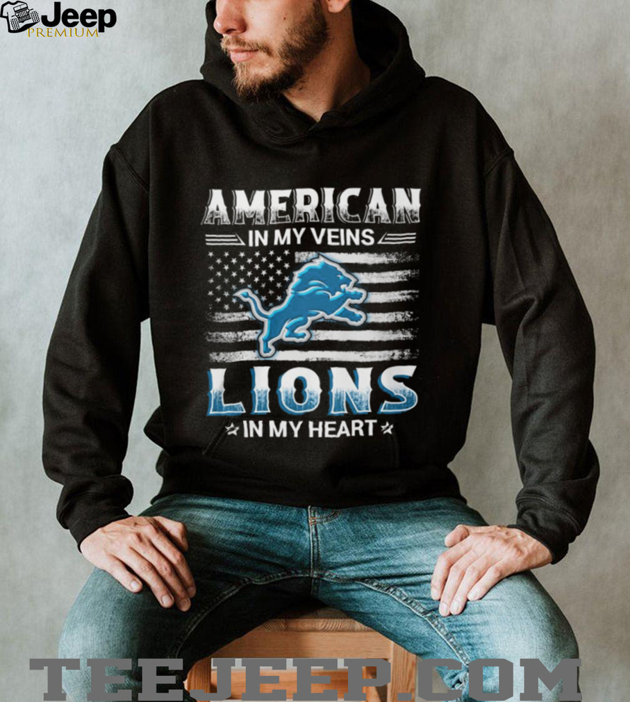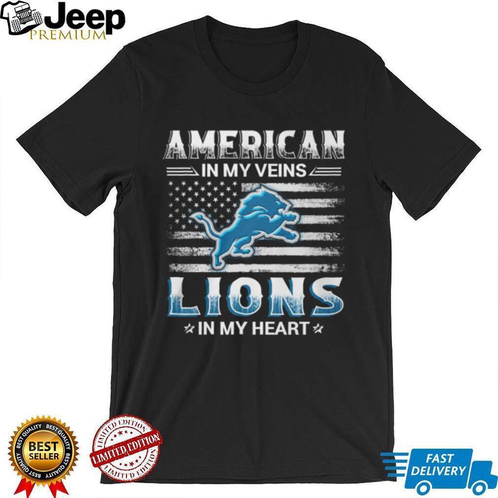 ()American In My Veins Detroit Lions In My Heart Football Fan T Shirt, Treat yourself or make a great gift for your loved ones
