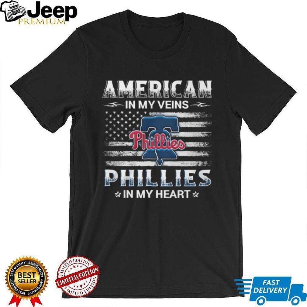()American In My Veins Phillies In My Heart Philadelphia Baseball T shirt, Treat yourself or make a great gift for your loved ones