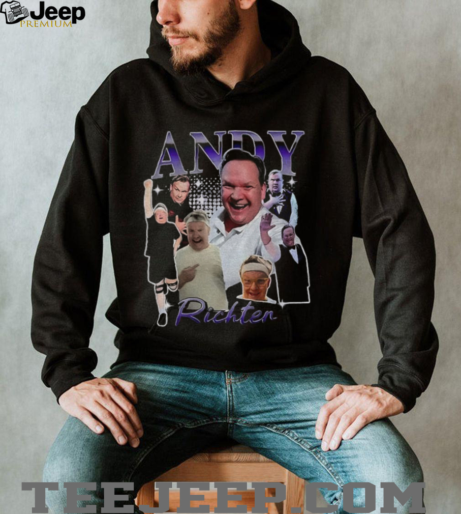 To keep your Andy Richter Dancing With The Stars shirt looking its best, machine wash cold, inside-out, with like colors. Tumble dry low or hang dry to preserve the design and prevent shrinkage. Avoid ironing directly on the print for long-lasting support for your favorite dancing duo.