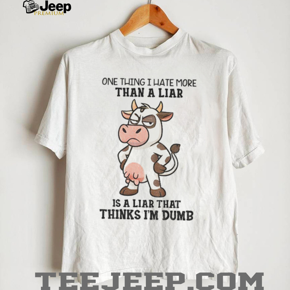 Do you have a zero-tolerance policy for dishonesty? This “Angry Cow one thing I hate more than a liar is a liar that thinks I’m dumb” shirt speaks your mind without you having to say a word. It’s the perfect blend of humor and attitude for those who value honesty (and cows!). Get ready to make a statement!