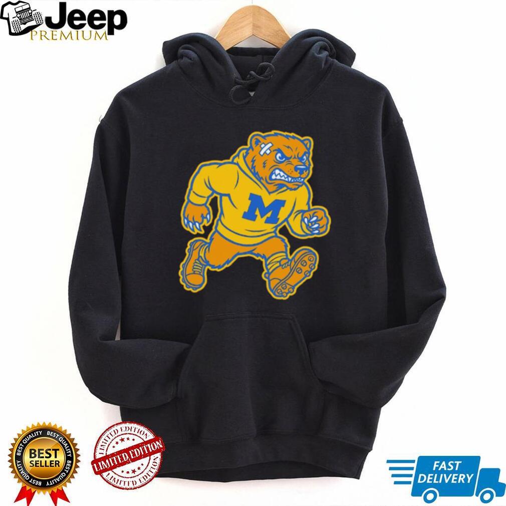 (Angry Michigan Wolverines Mascot Blue and Maize Vintage Sports T Shirt)Apr 20