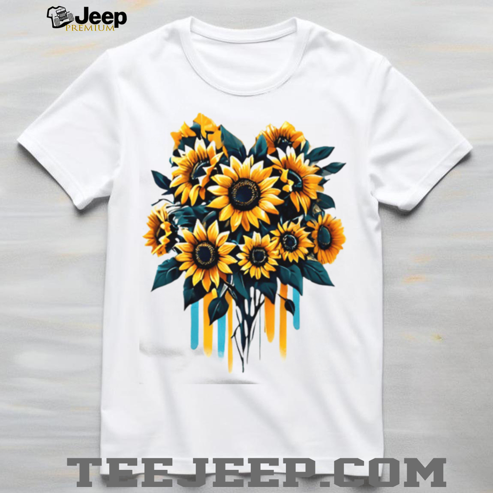 (Artistic Watercolor Sunflower Bouquet Yellow & Teal Floral T Shirt)Artistic Watercolor Sunflower Bouquet Yellow & Teal Floral T Shirt, Treat yourself or make a great gift for your loved ones