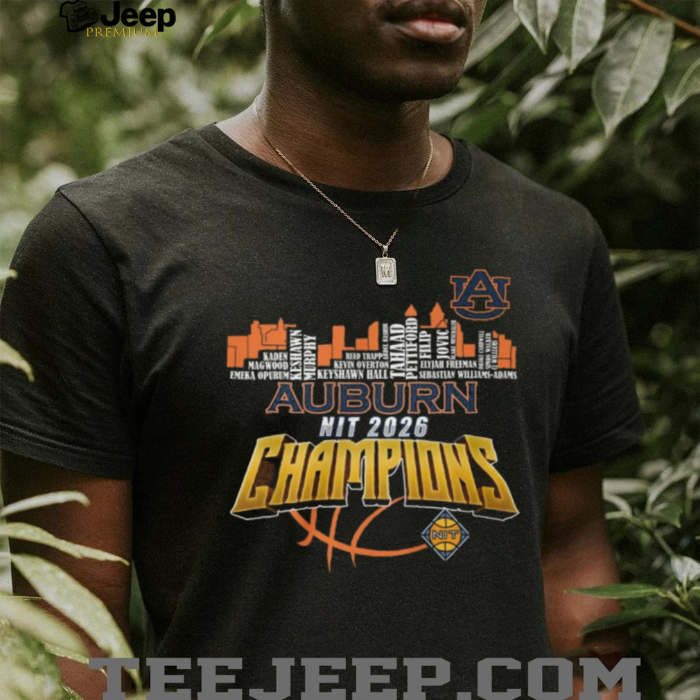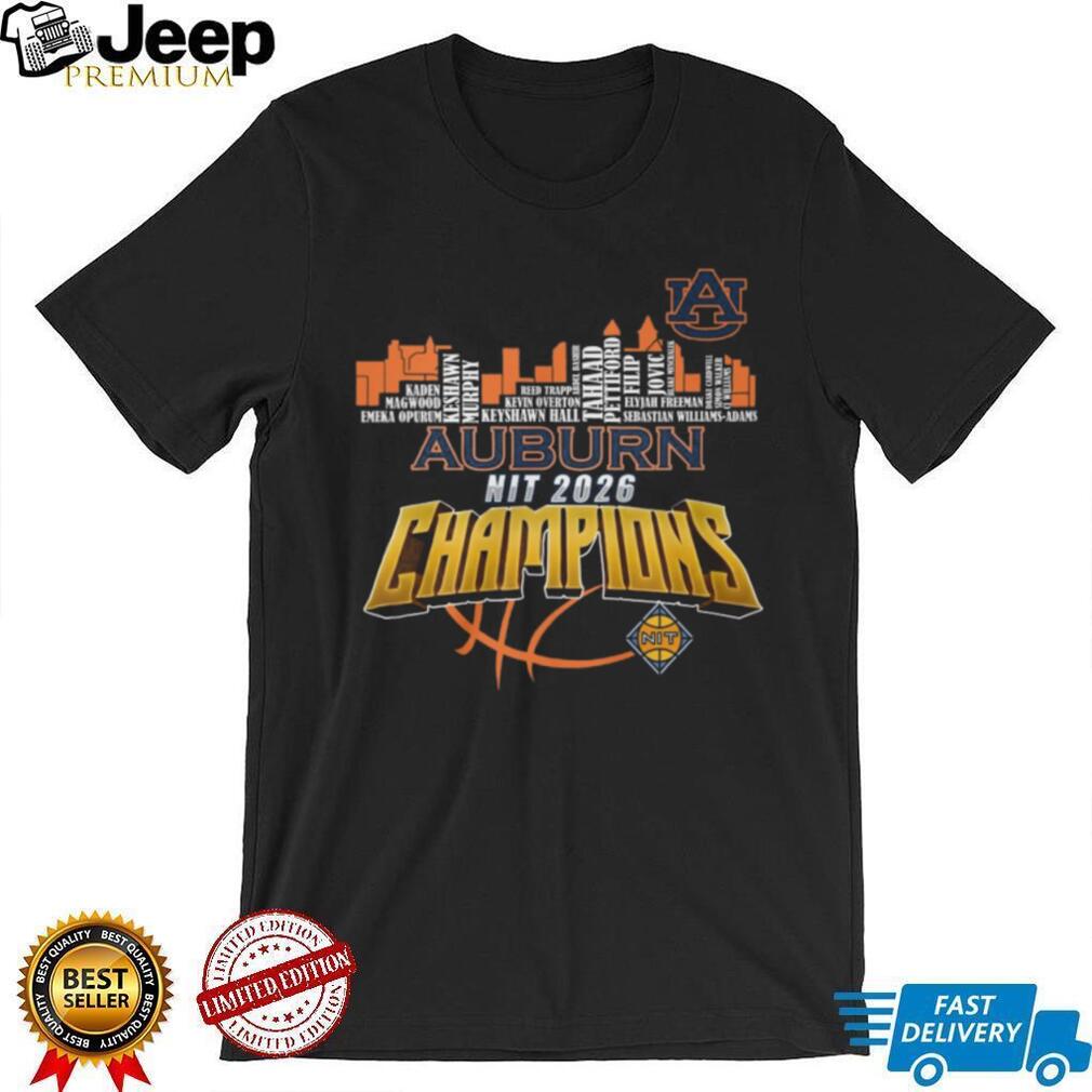 (Auburn Tigers 2026 NIT Basketball Champions City Skyline Roster T Shirt)Apr 26
