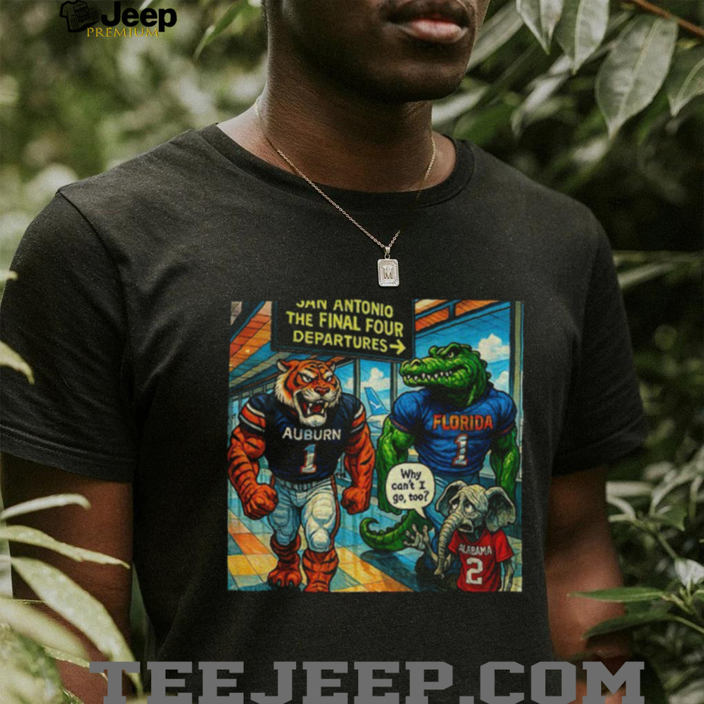 The “Auburn Tigers and Florida Gators The Final Four San Antonio April 2025 shirt” is a piece of apparel that commemorates a hypothetical Final Four matchup between the Auburn Tigers and the Florida Gators in the 2025 NCAA Men’s Basketball Tournament, held in San Antonio during April. This shirt serves as a celebratory item for fans of both teams, marking a significant moment in their respective basketball histories. It highlights the excitement of a potential clash between these two SEC rivals on the national stage. The design prominently features the Auburn Tigers and Florida Gators branding, the phrase “The Final Four,” the location “San Antonio,” and the year 2025.