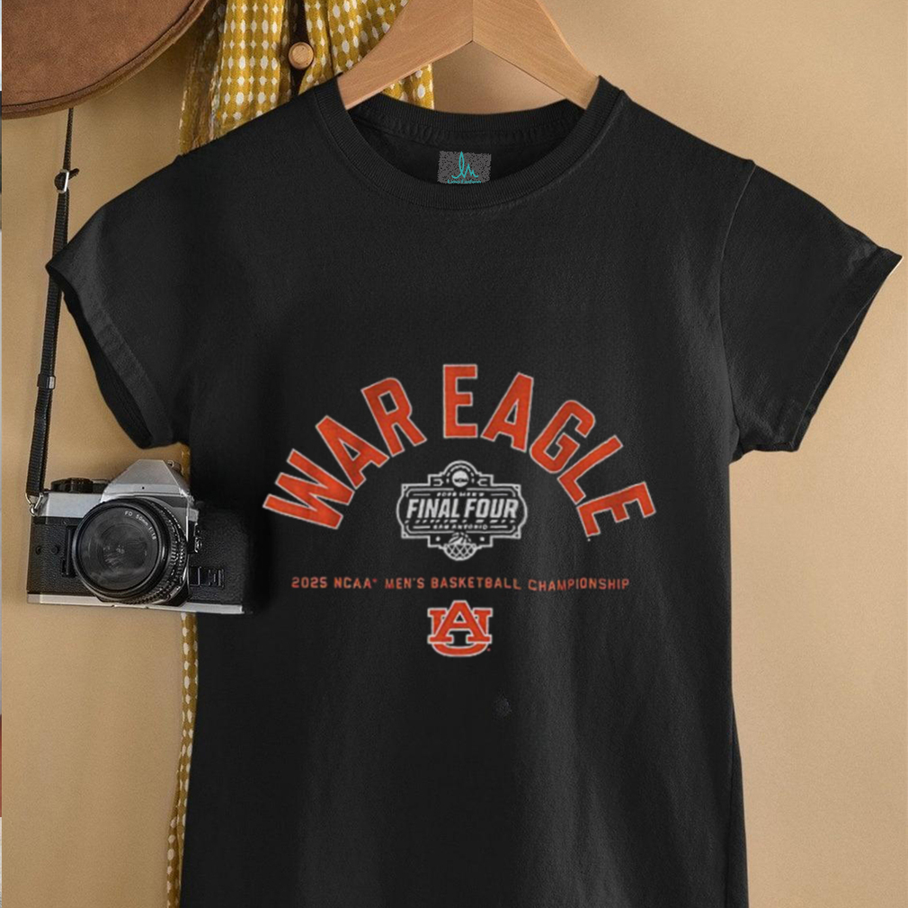 The “Auburn Tigers Basketball War Eagle Final Four 2025 NCAA Men’s Basketball shirt” is a piece of apparel designed to commemorate a hypothetical achievement by the Auburn Tigers men’s basketball team, reaching the Final Four of the 2025 NCAA Men’s Basketball Tournament. This shirt serves as a celebratory item for Auburn fans, marking a significant milestone in the team’s history and expressing excitement for their journey to the Final Four. The design prominently features the Auburn Tigers branding, the phrase “War Eagle,” the year 2025, and “Final Four.”