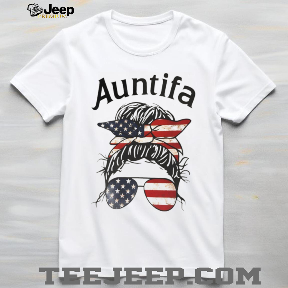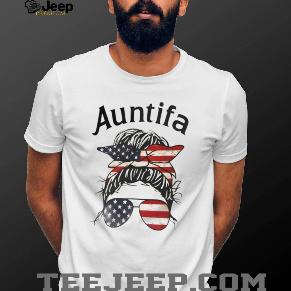 Show your patriotic side with a touch of sass with this “Auntifa” messy bun American flag shirt! This tee is for women who are both fiercely independent and love their country. It’s a playful and empowering way to express your values and make a statement wherever you go.