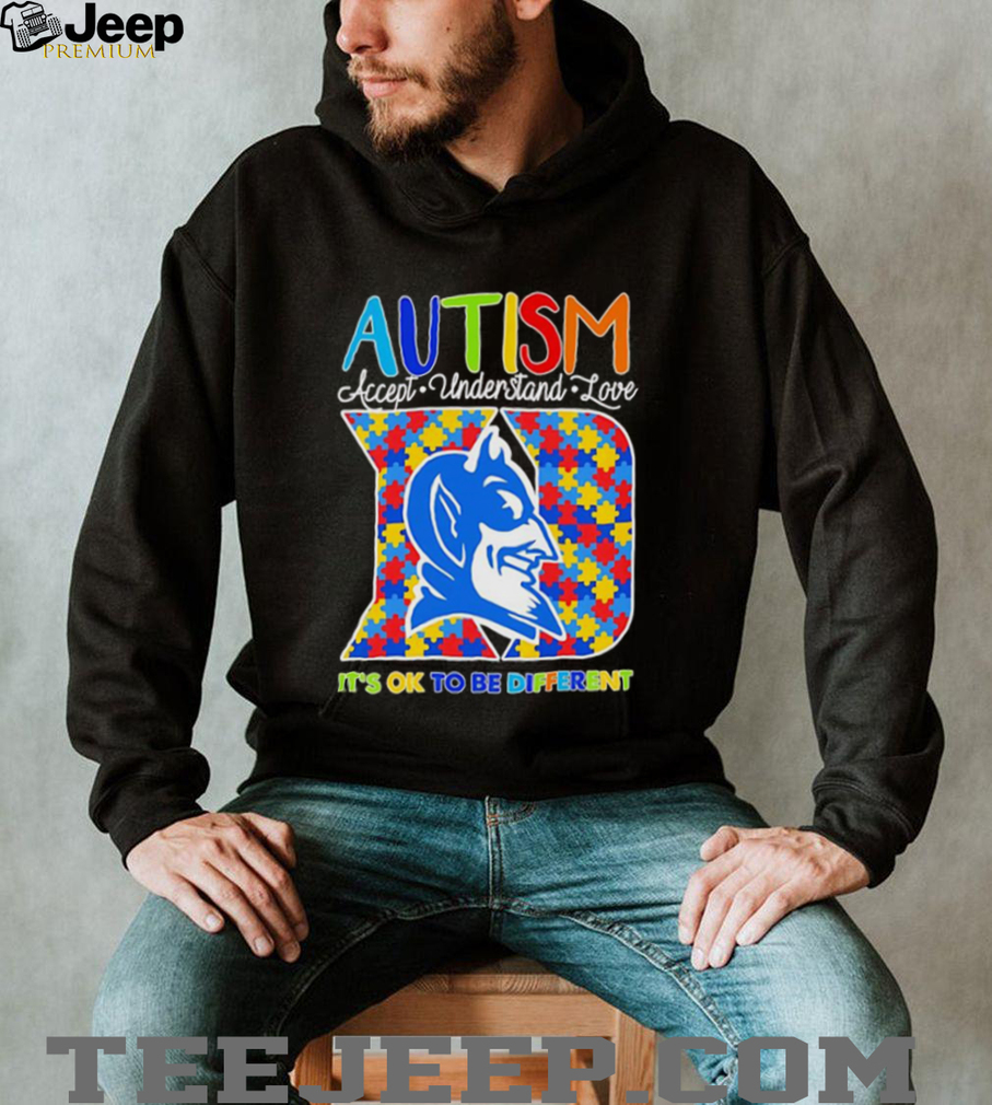 The “Autism Accept Understand Love It’s Ok To Be Different Duke Blue Devils Shirt” is a piece of apparel that combines a powerful message of autism acceptance and understanding with the iconic Duke Blue Devils brand. This shirt serves as a dual expression of support, both for individuals with autism and for the beloved college sports team. It’s designed to resonate with Duke Blue Devils fans who are also advocates for autism awareness, individuals who appreciate the intersection of sports and social causes, and anyone who believes in celebrating diversity. The design would prominently feature the phrases “Autism Accept Understand Love” and “It’s Ok To Be Different,” along with the Duke Blue Devils logo and team colors, potentially incorporating the autism awareness puzzle piece symbol.
