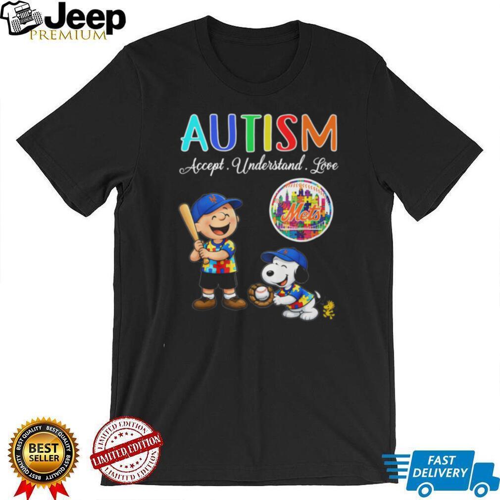 ()Autism Awareness Charlie Brown Snoopy Mets Baseball Love T Shirt, Treat yourself or make a great gift for your loved ones