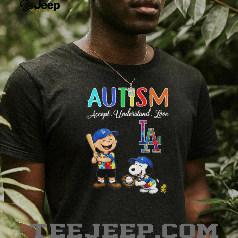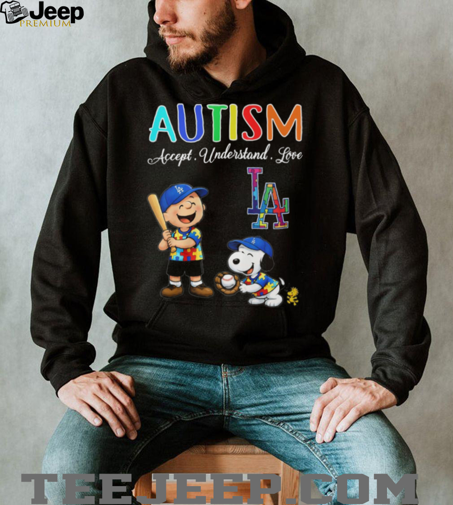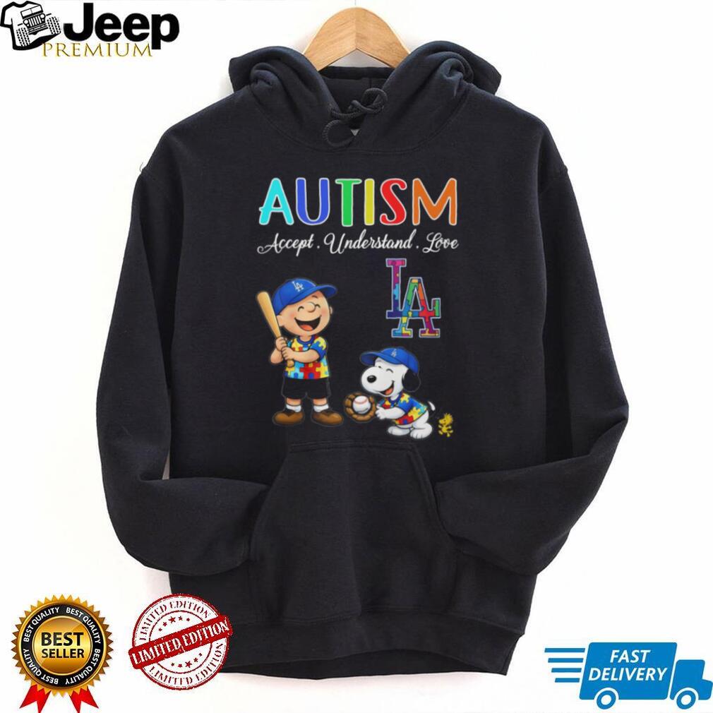 👕 About Autism Awareness Snoopy and Charlie Brown LA Baseball T Shirt