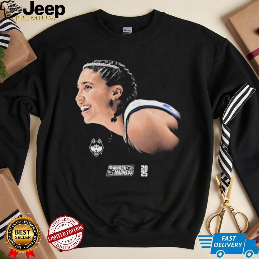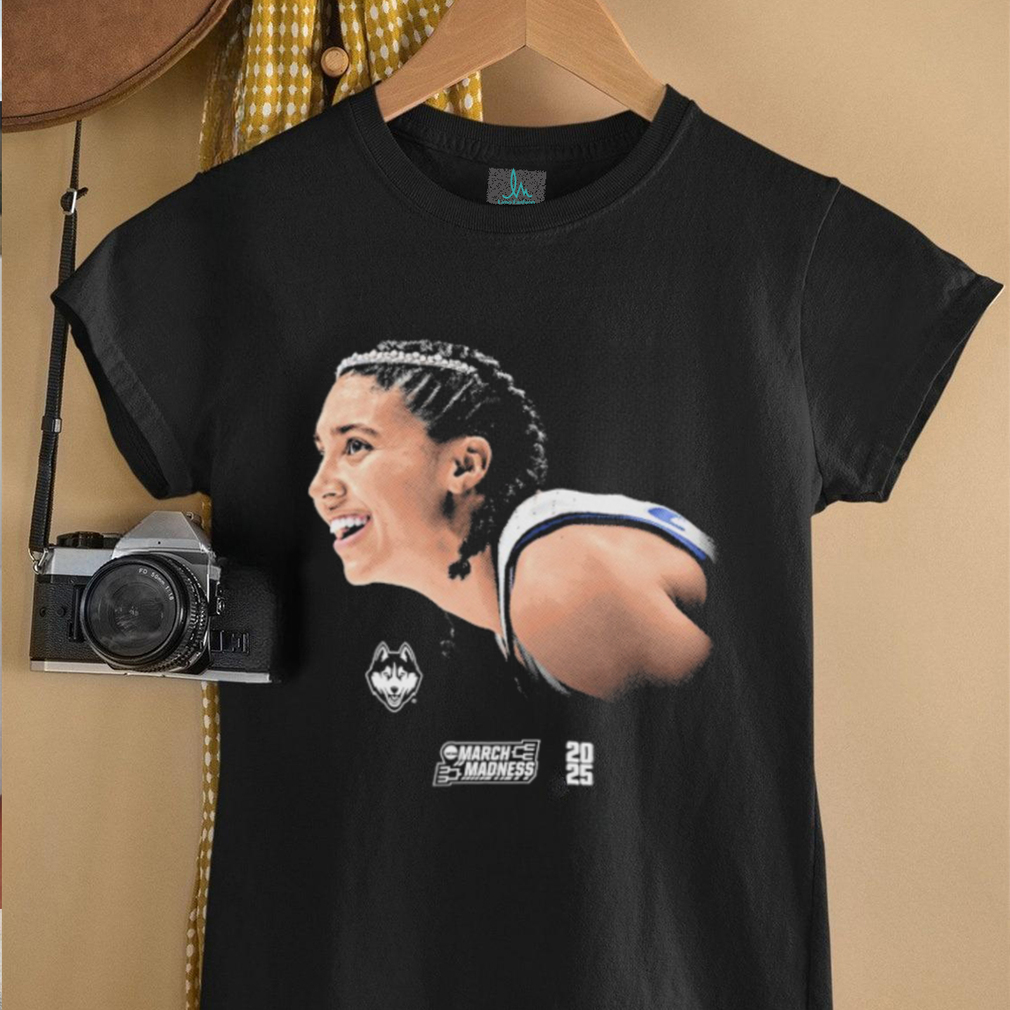 This t-shirt, featuring Azzi Fudd’s portrait and commemorating the 2025 NCAA Women’s Basketball March Madness tournament, would also serve as a special commemorative piece for fans. Following their dominant championship victory over South Carolina, where Fudd earned Most Outstanding Player honors, this apparel allows fans to remember and celebrate that specific season and Fudd’s outstanding performance. It’s a tangible way to hold onto the memories of their championship journey and to honor a player who played a crucial role in their triumph. This shirt becomes a symbol of a significant moment in UConn Huskies women’s basketball history and a testament to Azzi Fudd’s lasting impact on the program.