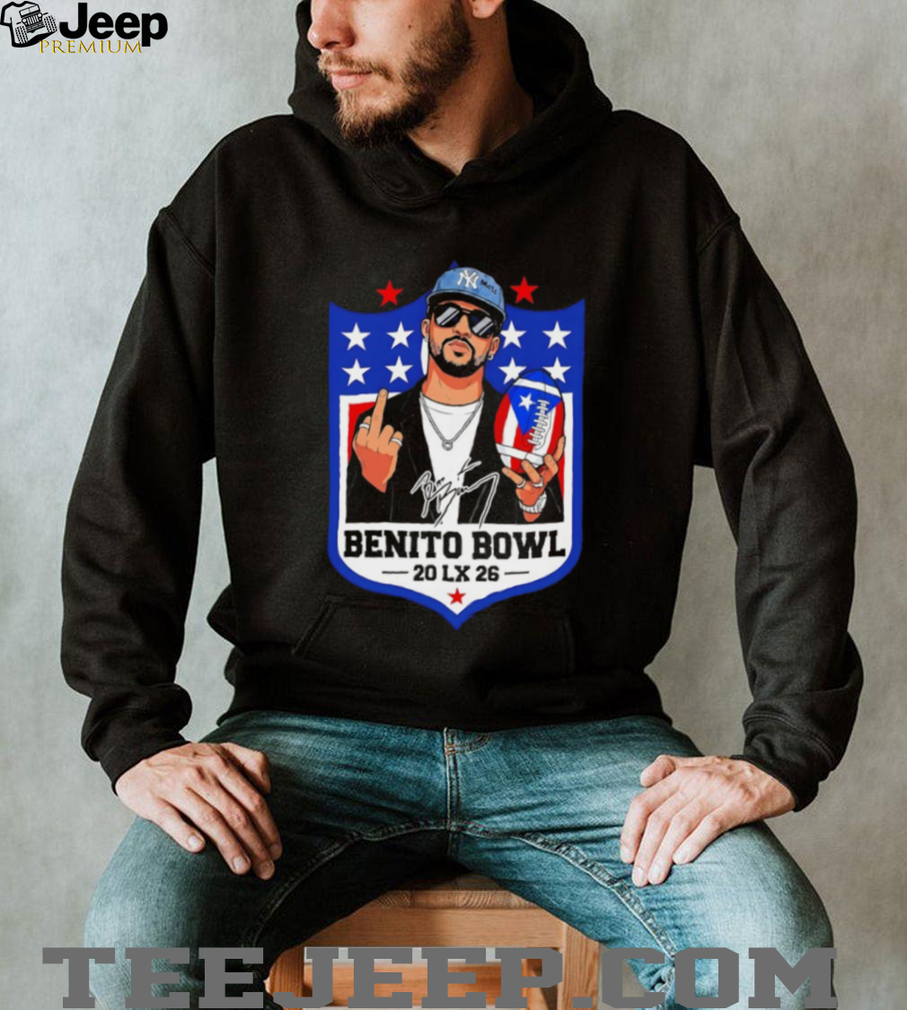 (Bad Bunny middle finger I’m Here for the Benito Bowl 20 LX 26 NFL logo signature t shirt)The psychological impact of retiring from professional sports is a significant challenge that many elite athletes face, often described as a loss of identity or a “mini-death.” For individuals who have spent their entire lives defined by their physical prowess and competitive achievements, the transition to a conventional lifestyle can be jarring and emotionally taxing. Without the daily structure of training, the adrenaline of game day, and the camaraderie of the locker room, many retired athletes experience high rates of depression and anxiety. This phenomenon has led to a growing demand for transition programs that provide mental health support, career counseling, and financial planning for those exiting the spotlight. Recognizing that an athlete’s value extends beyond their performance on the field is a crucial step for sports organizations to take in ensuring the long-term well-being of their players. By treating Bad Bunny middle finger I’m Here for the Benito Bowl 20 LX 26 NFL logo signature t shirt as a major life milestone that requires preparation, the sporting community can help its legends find new purpose and fulfillment in their post-competition years.