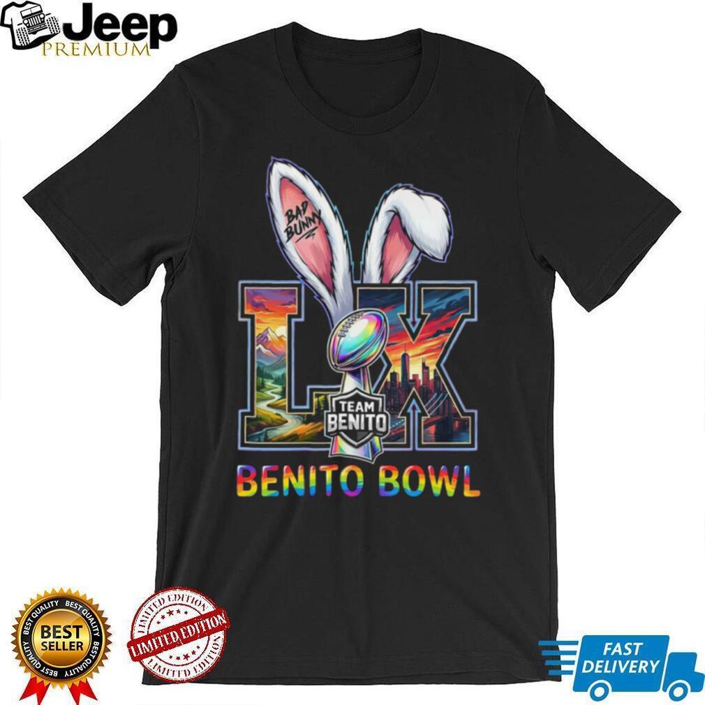 (Bad Bunny Team Benito Bowl LX Colorful Bunny Ears T shirt)Bad Bunny Team Benito Bowl LX Colorful Bunny Ears T shirt, Treat yourself or make a great gift for your loved ones