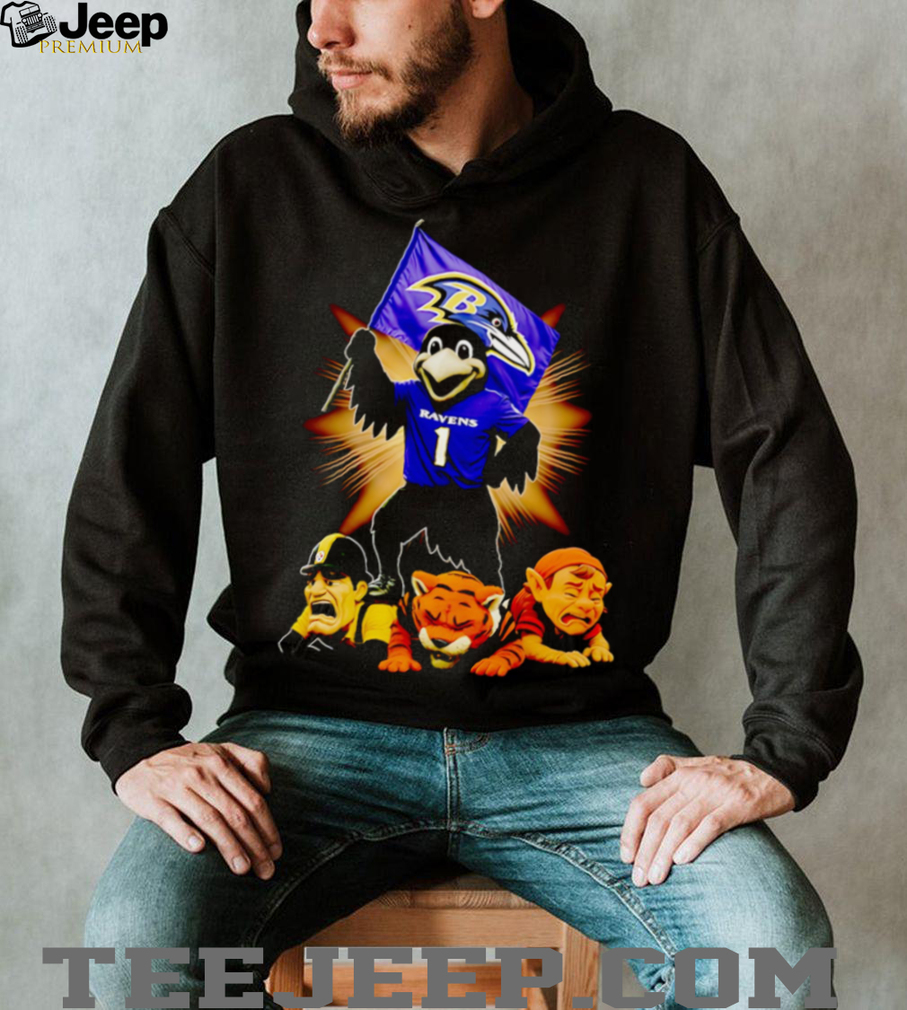 Soar with Pride: The Baltimore Ravens Mascot Standing with Flag Shirt