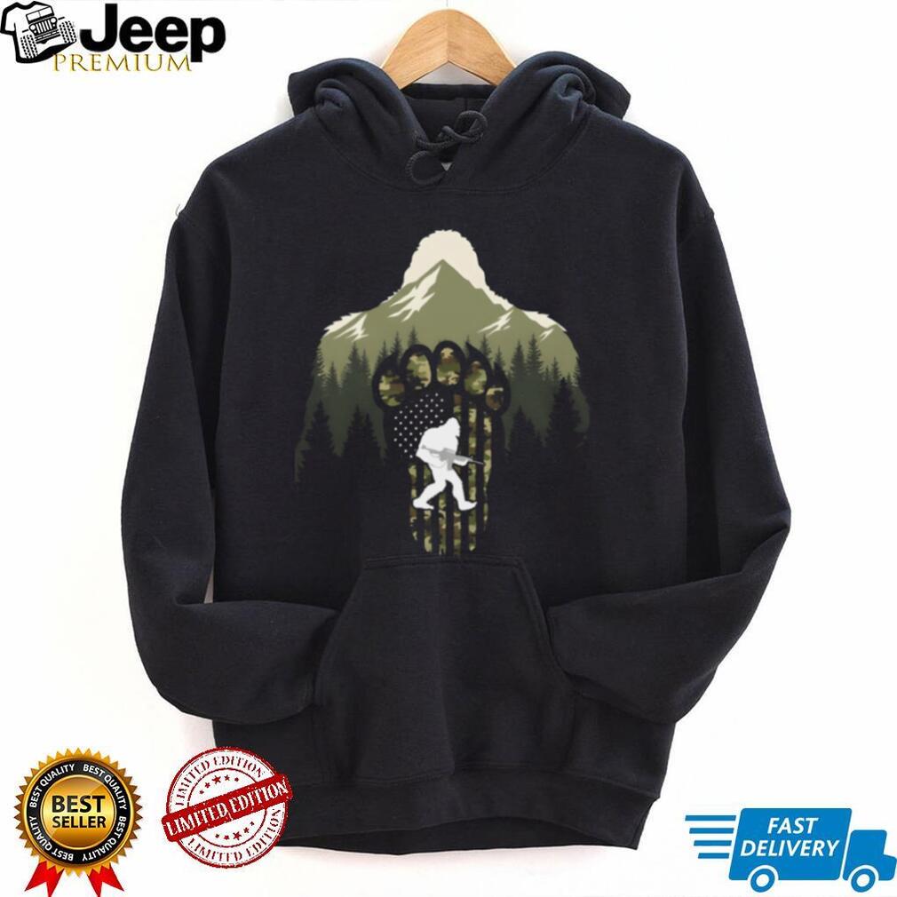 ()Bigfoot Hunting Camo American Flag Paw Print Mountain T Shirt, Treat yourself or make a great gift for your loved ones