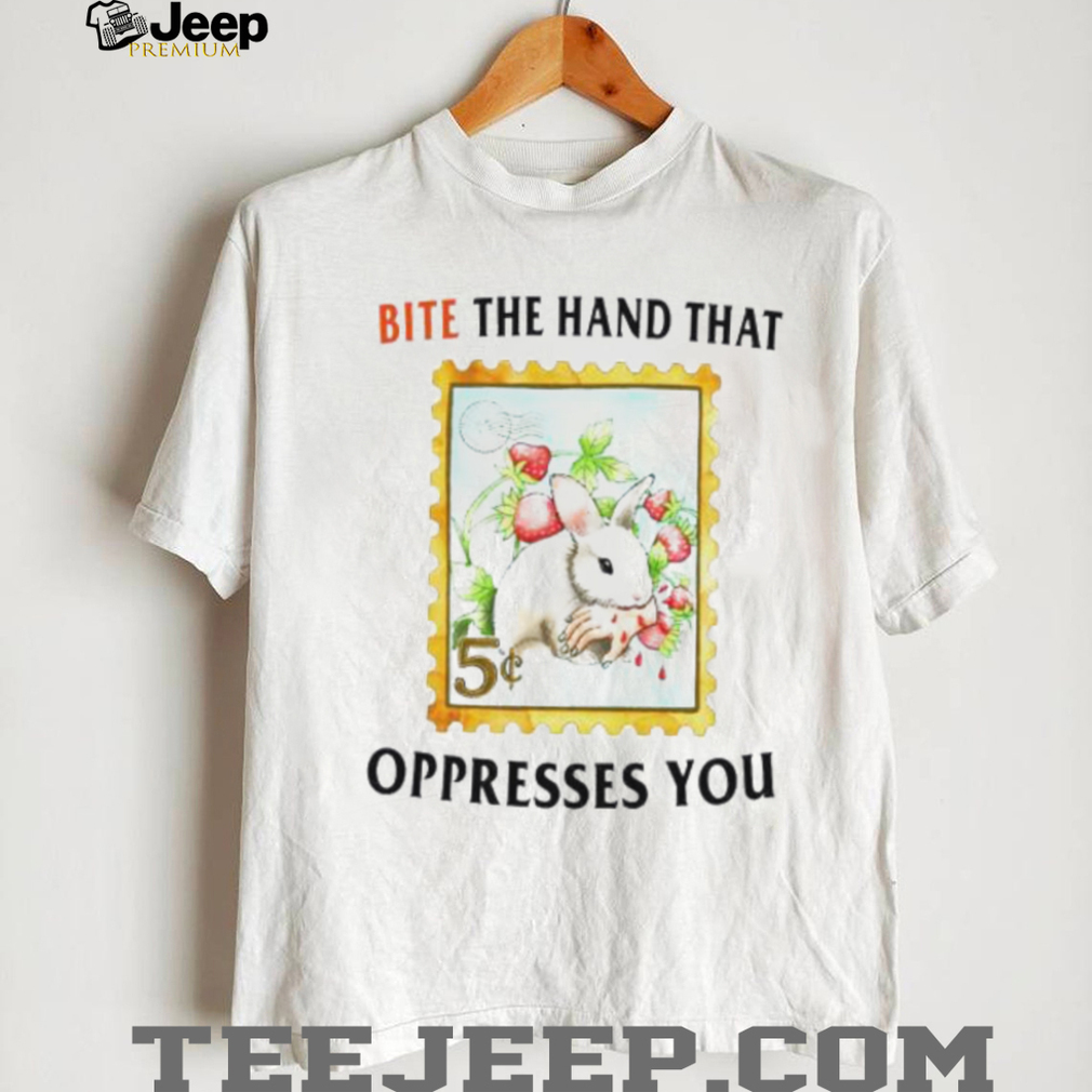 The “Bite the hand that oppresses you bunny shirt” is a piece of apparel that uses a striking and somewhat unexpected image – a bunny biting a hand – to convey a powerful message of resistance against oppression. The phrase itself is a well-known idiom that warns against harming those who provide for you. However, in this context, the imagery subverts that meaning, suggesting that when the hand that feeds you (or holds power over you) becomes oppressive, it is necessary and even justifiable to fight back. The bunny, often seen as gentle and vulnerable, taking such action amplifies the message of defiance against injustice, regardless of the perceived power imbalance.
