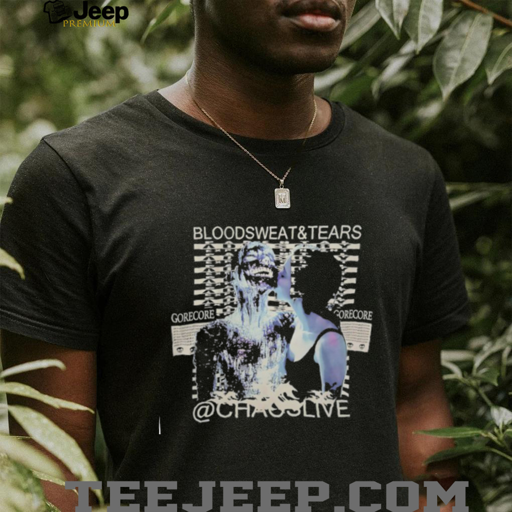 The “Blood Sweat and tears gorecore chaos live shirt” is a piece of apparel that encapsulates the intense and often extreme nature of gorecore music, a subgenre of heavy metal known for its graphic lyrics and chaotic sound. This shirt aims to capture the raw energy and visceral imagery associated with gorecore live performances. It serves as a memento for fans of the genre, reflecting the intense and often violent themes explored within the music. The design prominently features the phrases “Blood Sweat and tears,” “gorecore chaos,” and “live.”