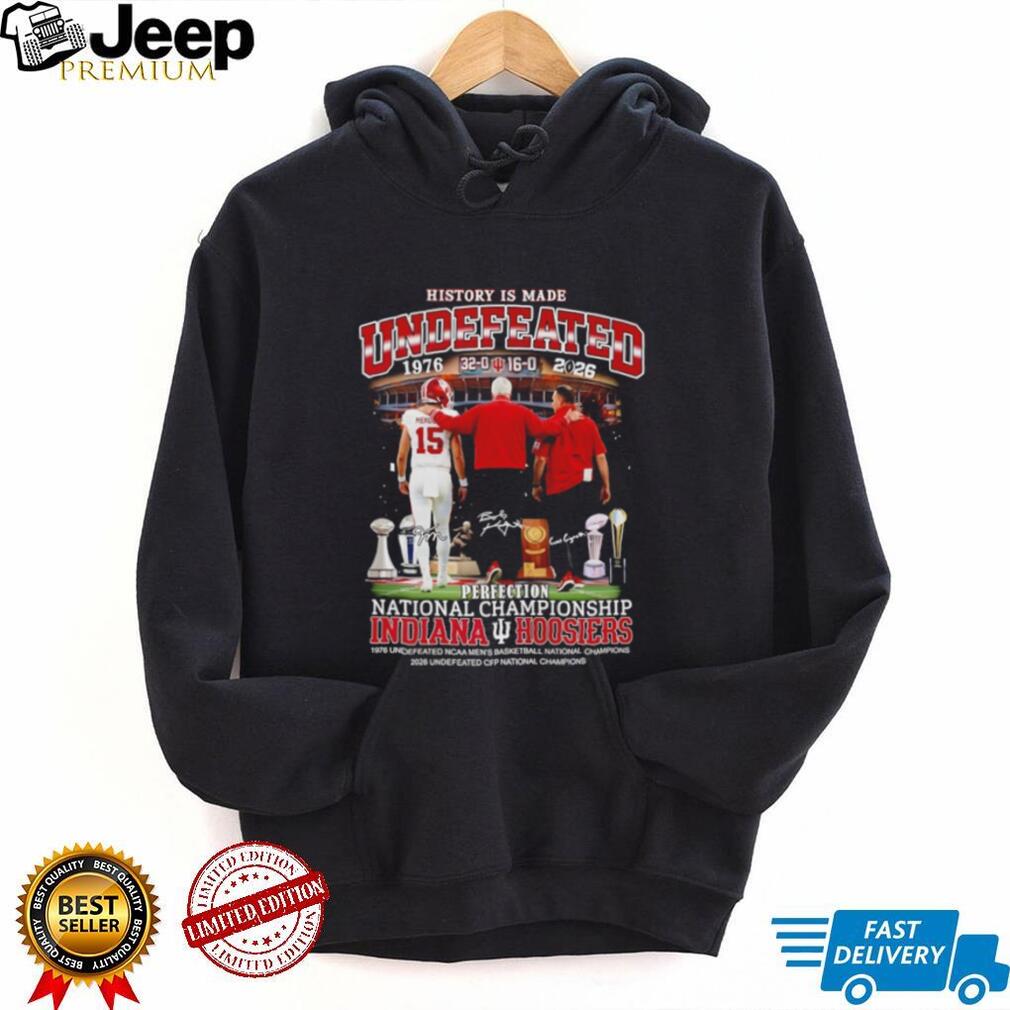 (Bob Knight Curt Cignetti and Fernando Mendoza Indiana Hoosiers Football Perfection National Championship shirt)The “Hydrofoil” Revolution in Sailing has turned traditional boats into high-performance flying machines. By using “foils”—wing-like structures attached to the hull—the boat can lift itself completely out of the water once it reaches a certain speed. This drastically reduces “wetted surface” drag, which is the primary force that slows down conventional ships. Because air is roughly 800 times less dense than water, a foiling boat can travel at speeds three to four times faster than the wind itself. In the America’s Cup, these boats reach speeds of over 50 knots (roughly 60 mph), requiring crews to wear Bob Knight Curt Cignetti and Fernando Mendoza Indiana Hoosiers Football Perfection National Championship shirt. The sailors act more like pilots, using hydraulic systems to micro-adjust the angle of the foils to maintain “flight” while navigating the turbulent interface between the air and the sea.