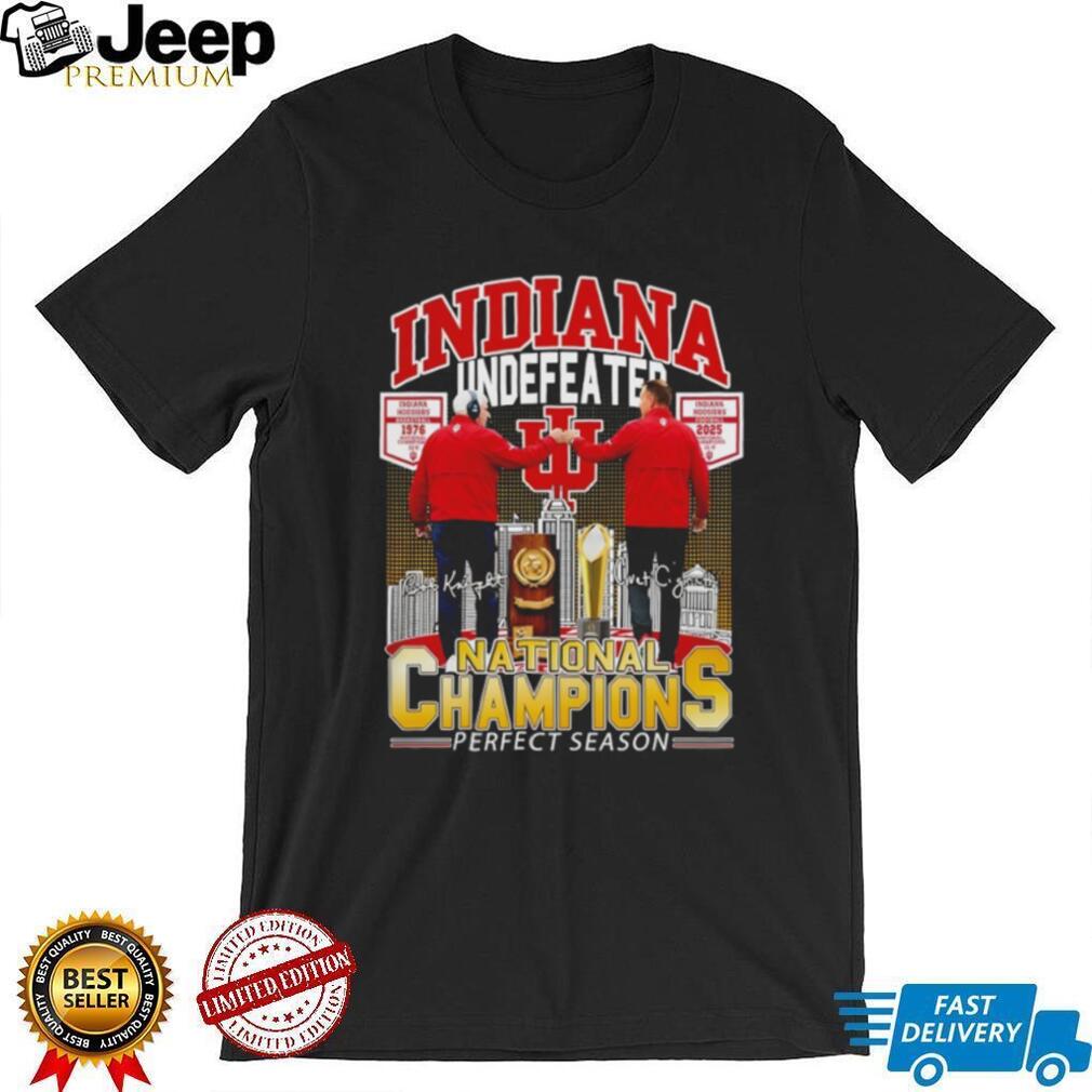 (Bob Knight vs Curt Cignetti Indiana Hoosiers Football Undefeated National Champions Perfect Season shirt)The “Stroke Rate vs. Distance Per Stroke” in Elite Swimming is the primary mathematical equation that determines a swimmer’s speed. To go faster, a swimmer must either increase their stroke rate (how many pulls they take per minute) or their distance per stroke (how far they travel with each pull). However, these two variables often work against each other; as a swimmer pulls faster, they tend to lose “grip” on the water, reducing their efficiency. Elite swimmers like Katie Ledecky or Adam Peaty use Bob Knight vs Curt Cignetti Indiana Hoosiers Football Undefeated National Champions Perfect Season shirt to maximize their “catch,” turning their entire arm from fingertips to elbow into a large paddle. By keeping the elbow high and “grabbing” the water early in the stroke, they create a high-pressure zone that allows them to move a massive volume of water backward, ensuring that every ounce of energy expended results in maximum forward displacement.