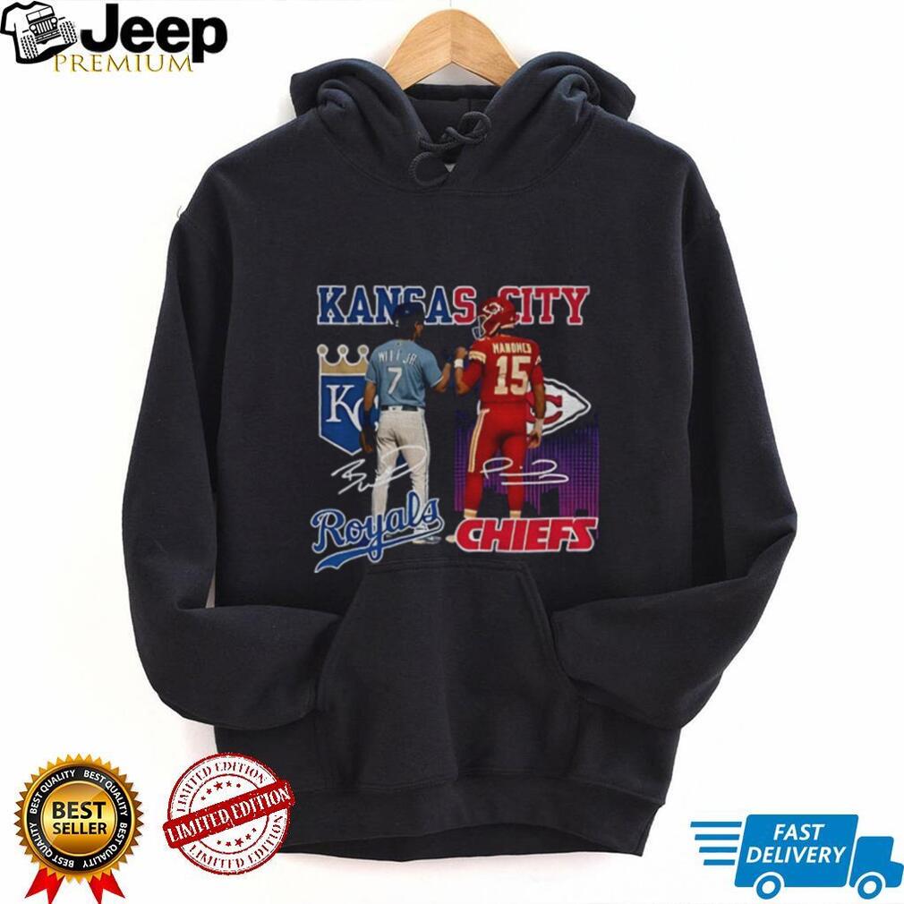 The design features striking elements that pay homage to both athletes, emphasizing their “signature” status in a way that’s both stylish and reverent. Crafted from premium, soft fabric, this shirt guarantees supreme comfort, whether you’re cheering from the stands, hosting a game day party, or simply enjoying a casual outing. Its durable construction ensures that this piece of Kansas City history will withstand countless washes and remain a cherished part of your wardrobe for years to come. Because when you wear this shirt, you’re not just wearing fabric; you’re wearing a piece of Kansas City’s heart and soul.