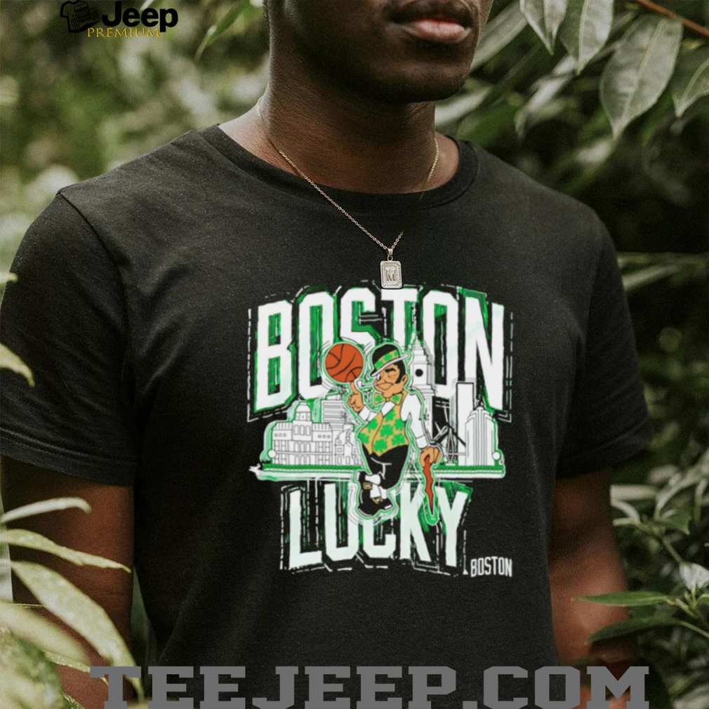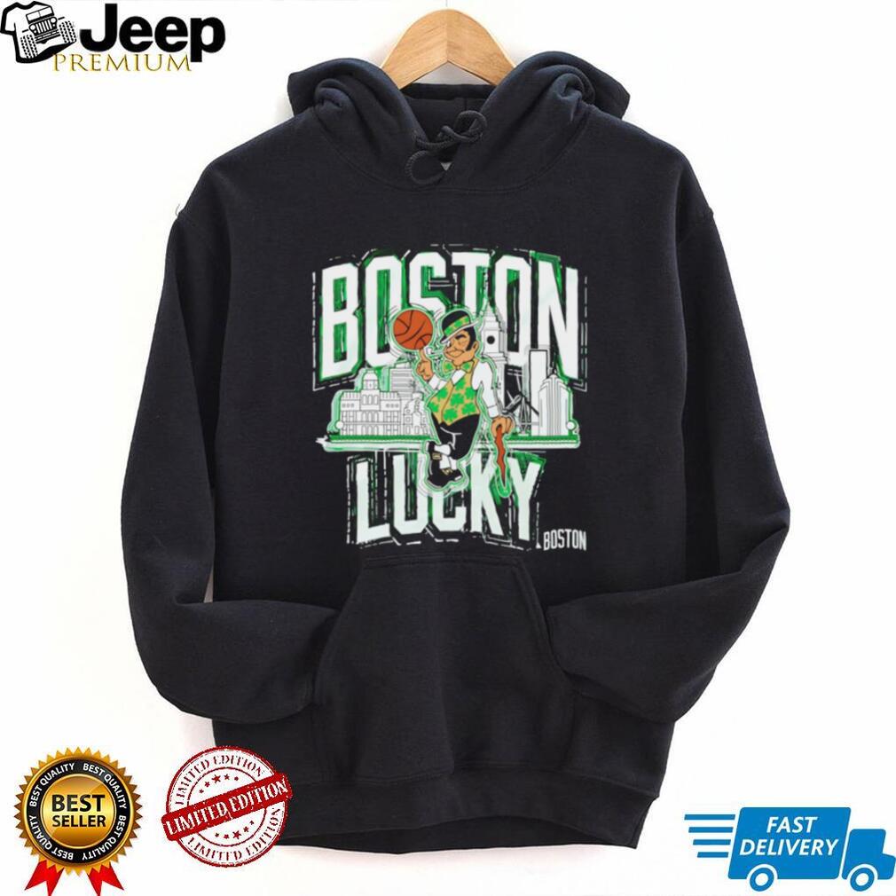 (Boston Celtics Lucky The Leprechaun Basketball City Skyline T Shirt)Apr 23
