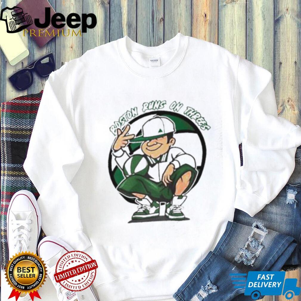 Imagine a shirt, not just celebrating a team, but glorifying their signature offensive weapon with the kind of swagger that makes opponents tremble. Our “Boston Celtics Runs On Threes Basketball” shirt captures this gloriously audacious sentiment, a wearable testament to the fact that sometimes, the best strategy is to just launch a barrage of three-pointers until the scoreboard melts. It’s a conversation starter, a nod to the Celtics’ sharpshooting prowess, and a hilarious way to express your love for the kind of basketball that involves more long-range bombs than actual layups. Picture a graphic that’s a stylized Celtics logo, a basketball engulfed in flames, and a tagline that says, “Threes: Our Love Language.”