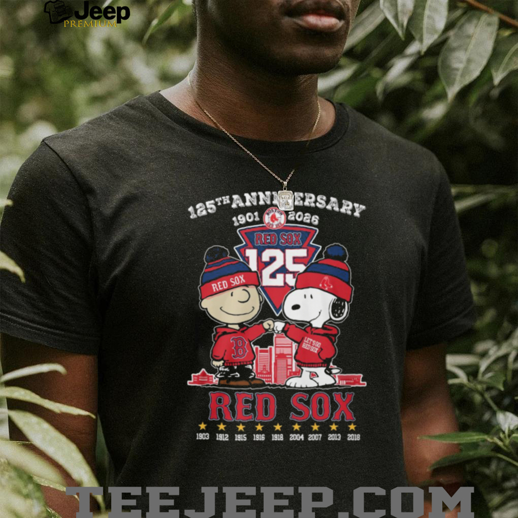 👕 About Boston Red Sox 125th Anniversary 1901 2026 Charlie Brown & Snoopy T Shirt