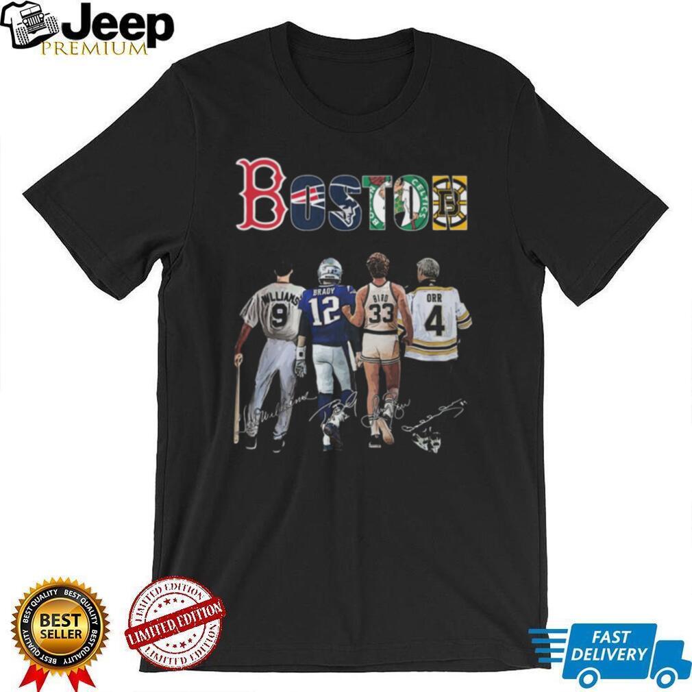 Boston Sports Legends Signatures T Shirt Williams, Brady, Bird, Orr, Treat yourself or make a great gift for your loved ones