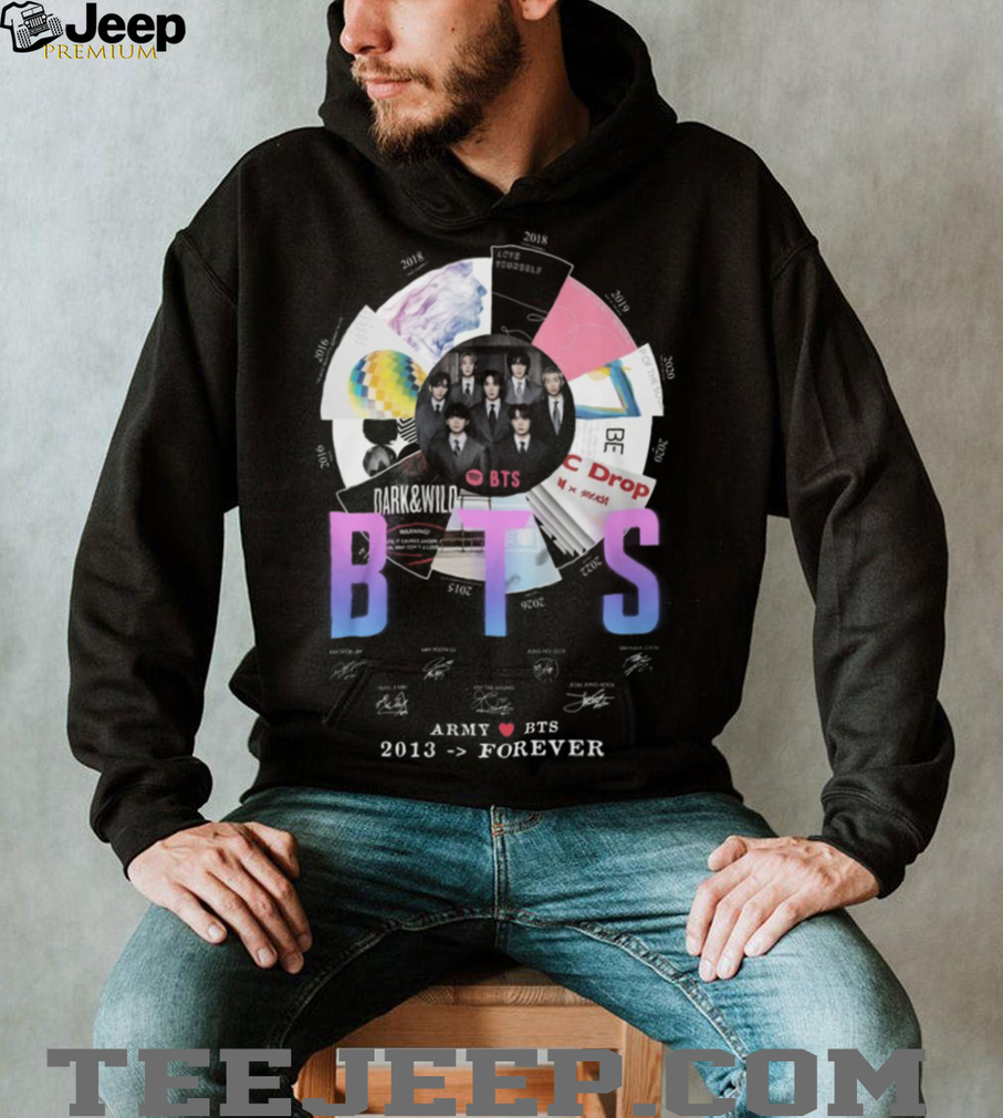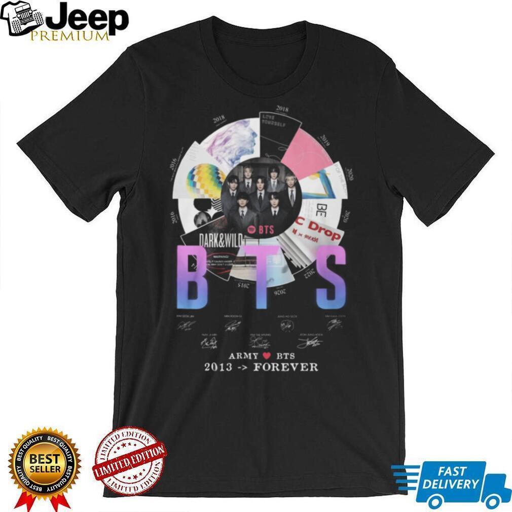 (BTS Army Love BTS 2013 Forever Discography Timeline Signatures T Shirt)