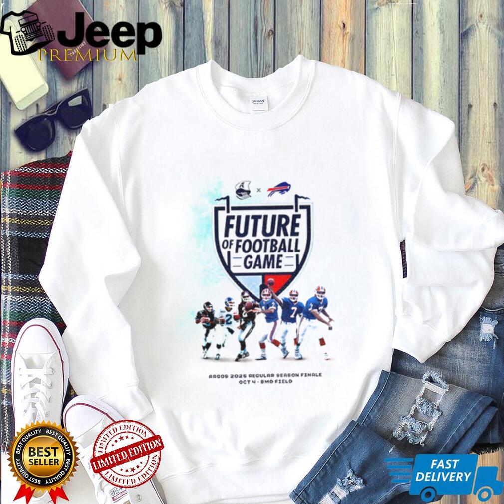 Commemorate a unique moment in football history with this Buffalo Bills “Future of Football” game shirt! Celebrating the Bills’ face-off against the Argos in the 2025 regular season finale, this tee is a must-have for die-hard fans. Perfect for wearing to the game, watch parties, or just showcasing your Bills pride, this shirt marks a special occasion and your unwavering team spirit.
