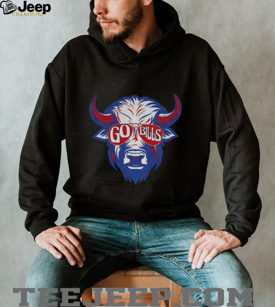 This Buffalo head wearing glass Go Bills Buffalo Bills NFL Football Mafia fan shirt isn’t your average team tee. It features a bold buffalo graphic sporting some serious shades, showing off that iconic Buffalo attitude. Made with comfortable, durable fabric, it’s ready for all the excitement of game day. It’s a must-have for showing your Buffalo pride and repping the Bills Mafia.