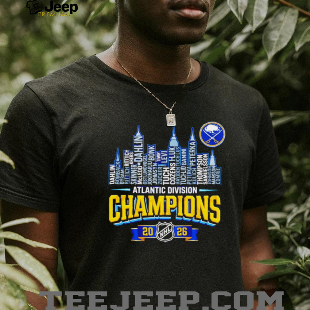 (Buffalo Sabres 2026 Atlantic Division Champions Roster Skyline T Shirt)The Ultimate Everyday Essential Elevate your wardrobe with the signature Teejeep touch. Our premium t-shirts are crafted for those who demand the perfect balance of rugged durability and cloud-like softness. Whether you’re hitting the streets or relaxing at home, this is the tee you’ll reach for every time.