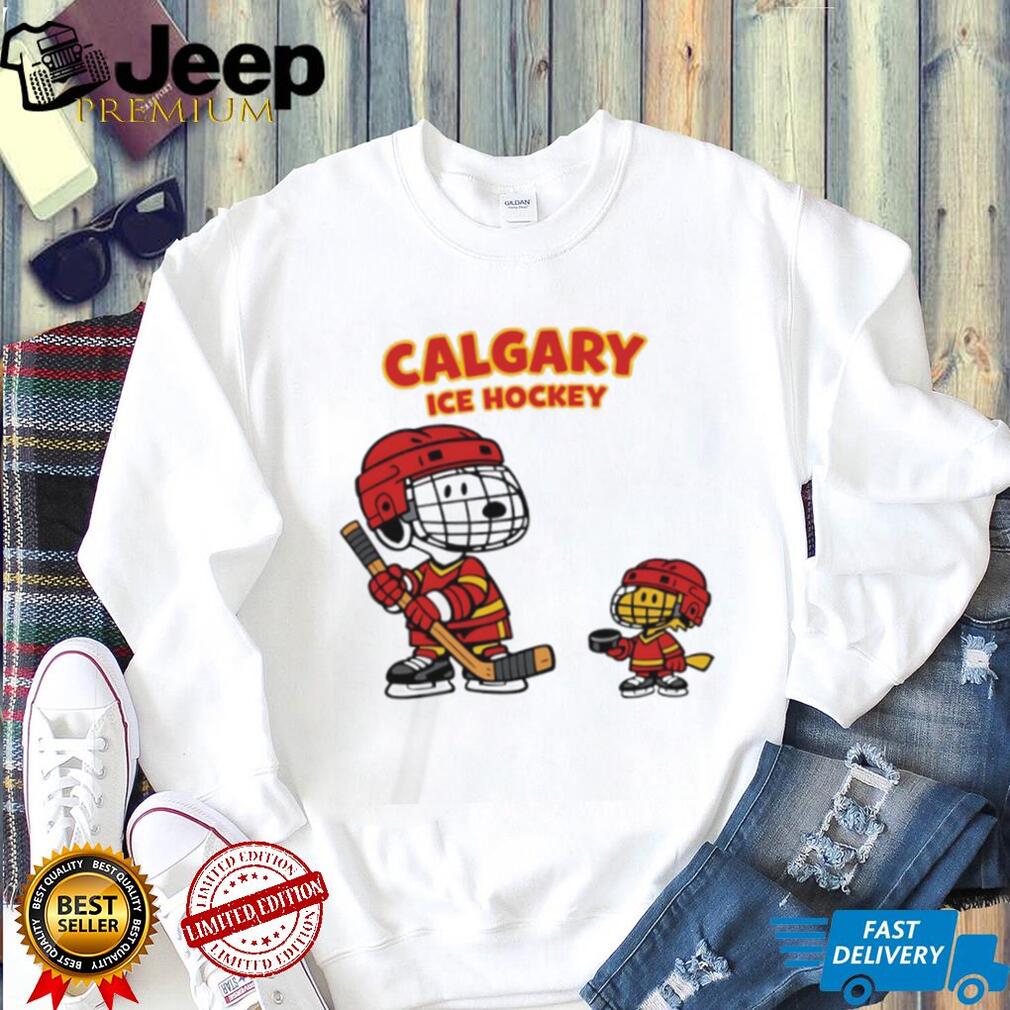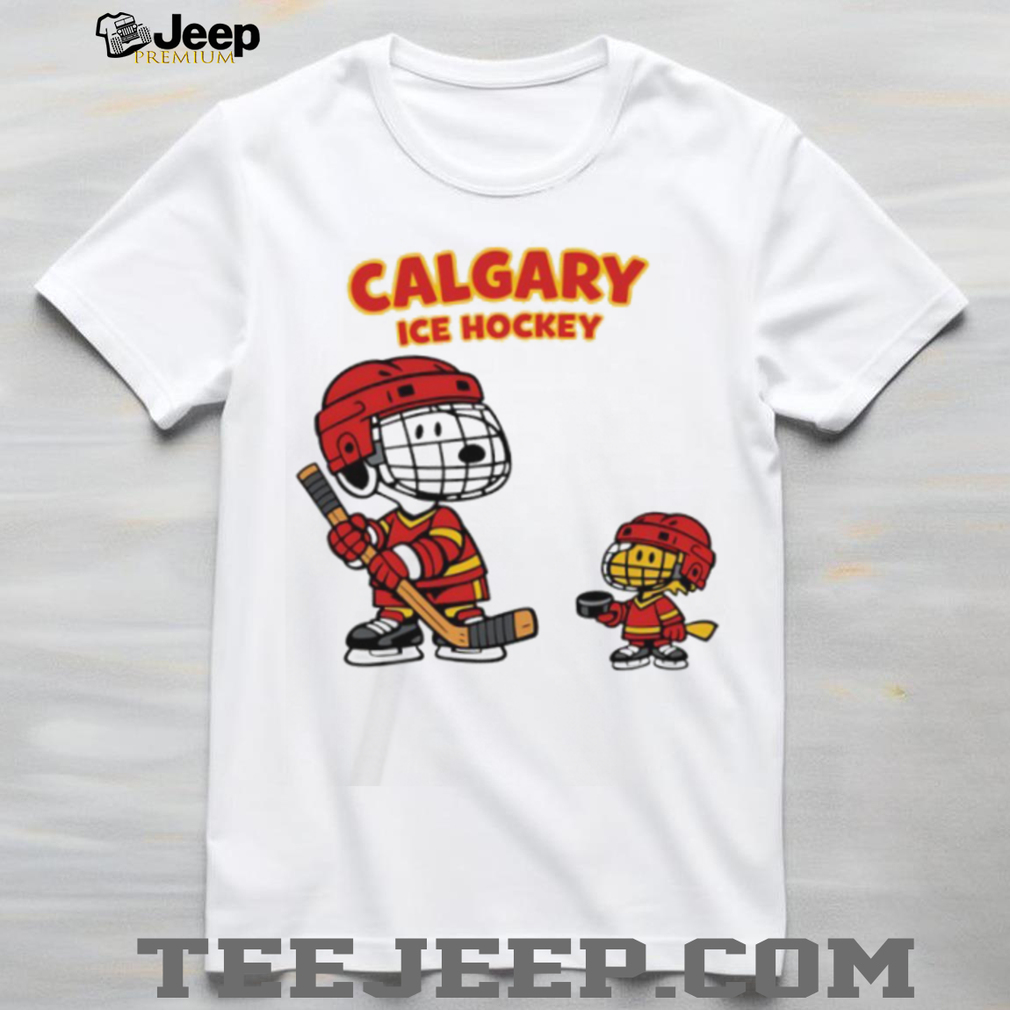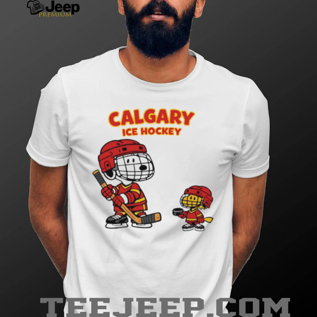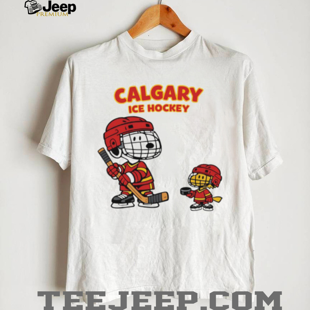 (Calgary Ice Hockey Snoopy and Woodstock Graphic T Shirt)