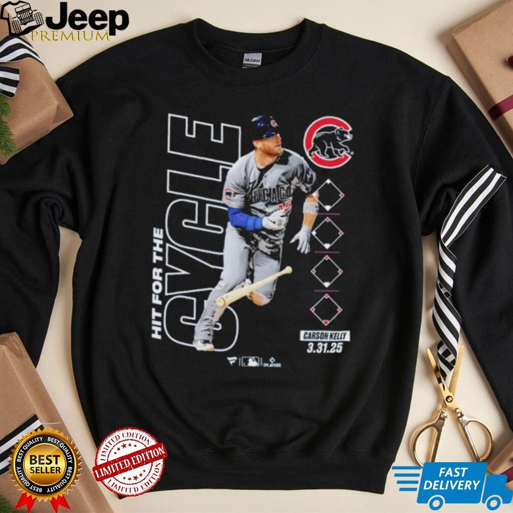 Wearing this t-shirt allows Chicago Cubs fans to express their excitement and pride in witnessing or hearing about Carson Kelly’s cycle. It’s a tangible way to connect with a memorable game and a standout performance by one of their players. For fans who value offensive explosions and rare achievements, this shirt becomes a prized souvenir. It signifies their appreciation for Kelly’s contribution to the team and serves as a conversation starter with other baseball enthusiasts who recognize the difficulty and significance of hitting for the cycle in a Major League Baseball game.