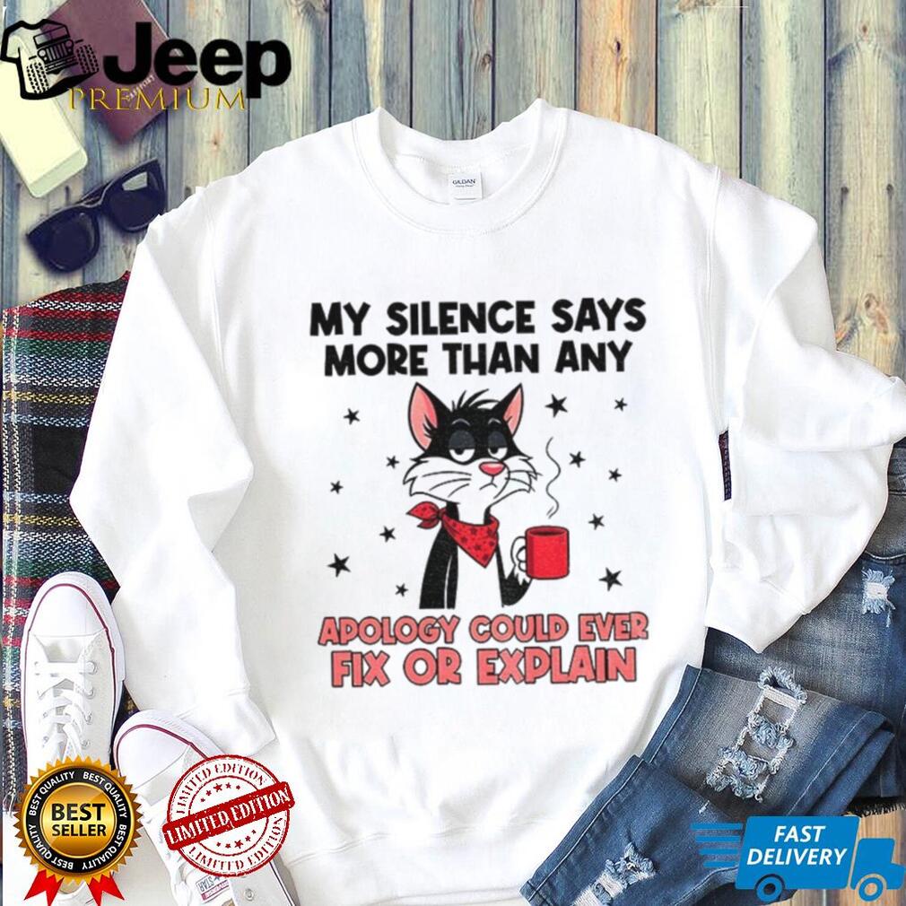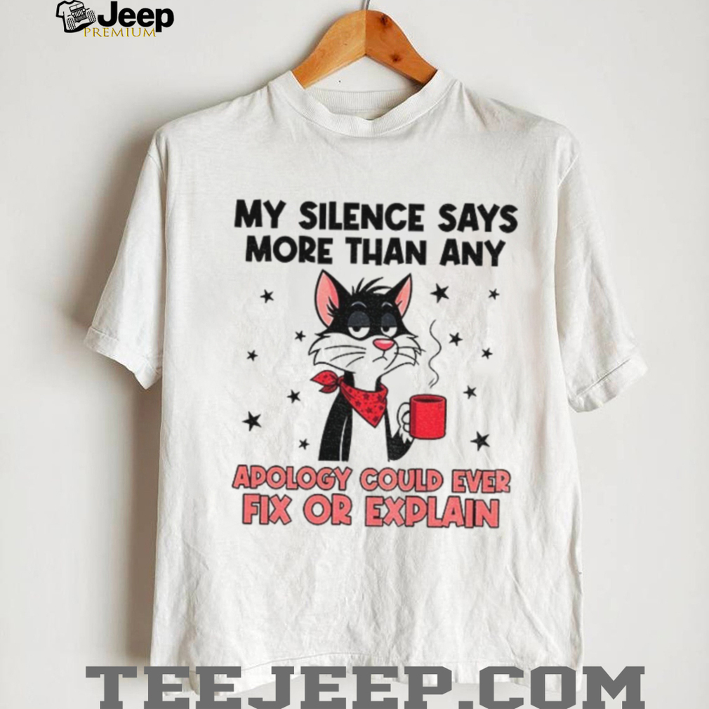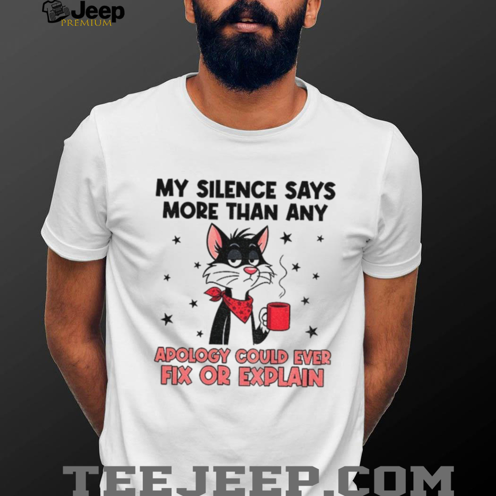 This tee combines a love for cats with a hilarious and relatable message about the power of silence. The saying “My silence says more than an apology could ever fix or explain” is perfect for introverts and those who value actions over empty words. Wear it when you’re not in the mood to chat, to avoid unnecessary apologies, or just to make people laugh. Be sure to use the sizing chart to get a shirt that fits you well!.