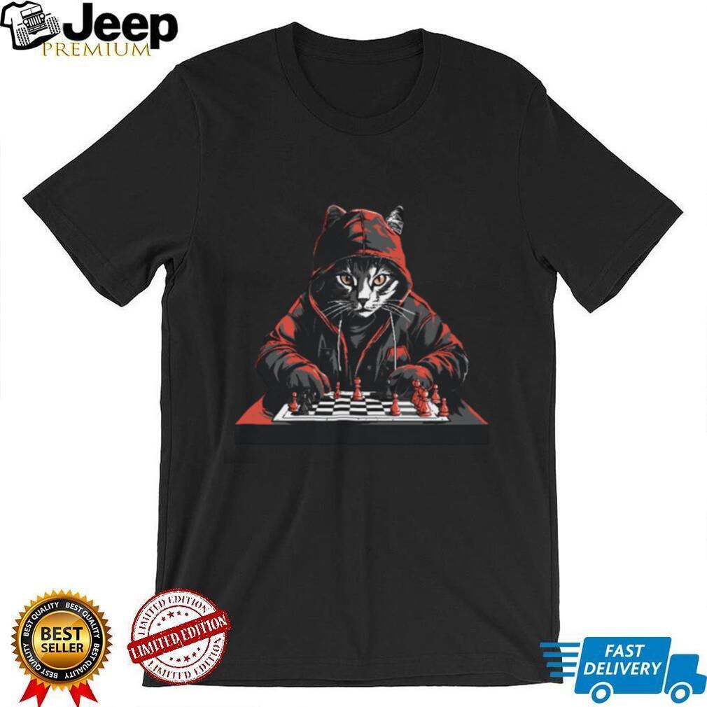👕 About Cat Wearing Hoodie Playing Chess Strategic Board Game Tee