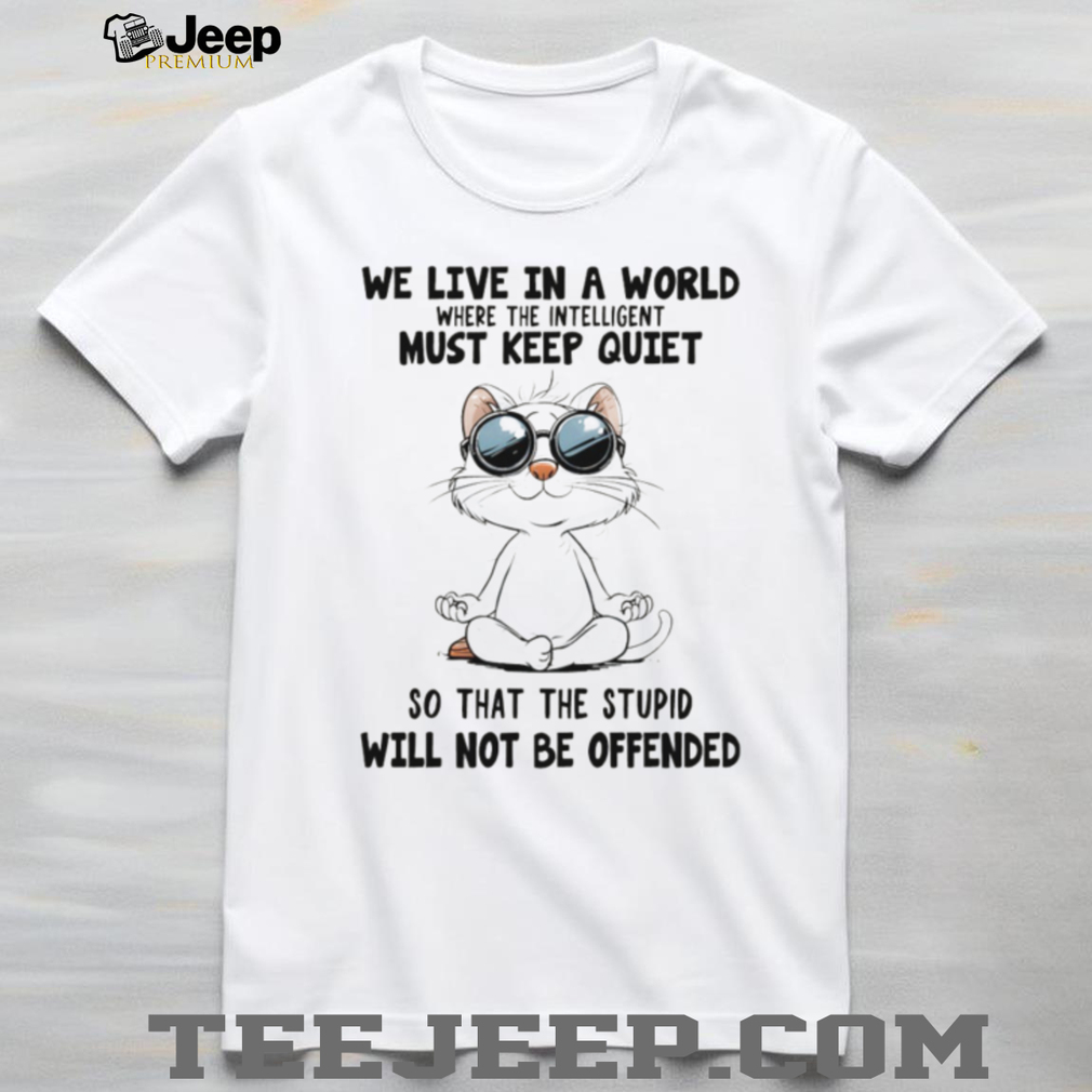 👕 About Cat yoga we live in a world where the intelligent must keep quiet so that the stupid will not be offended shirt