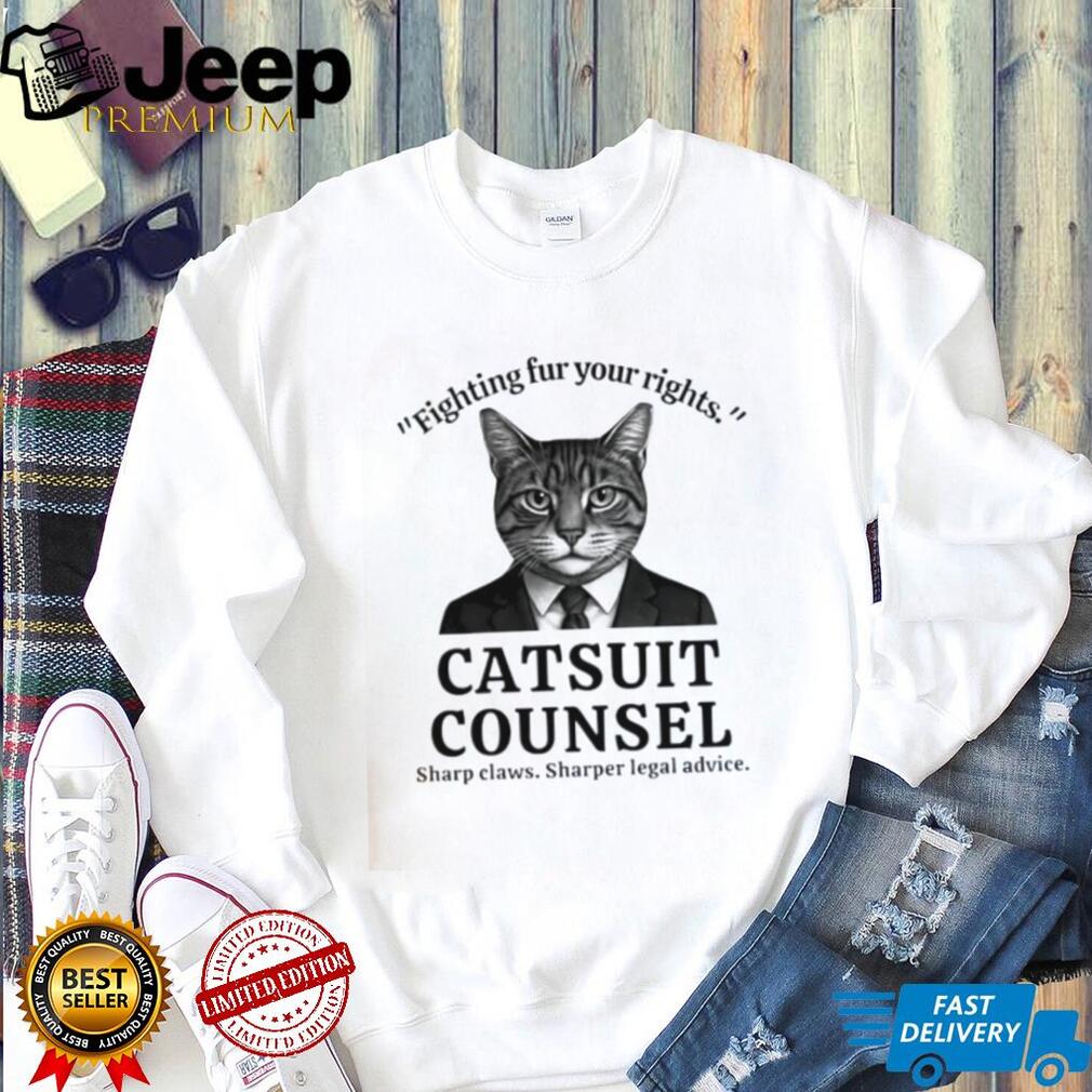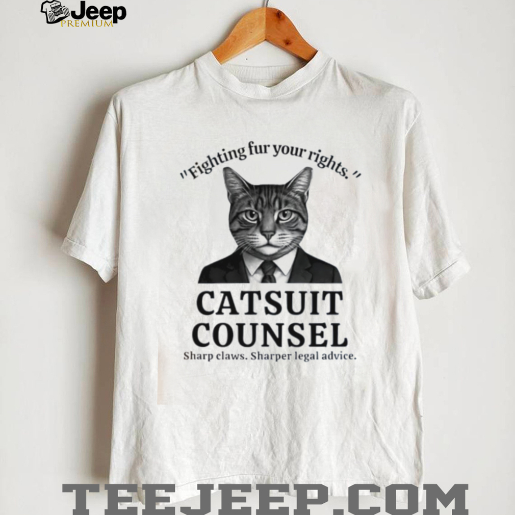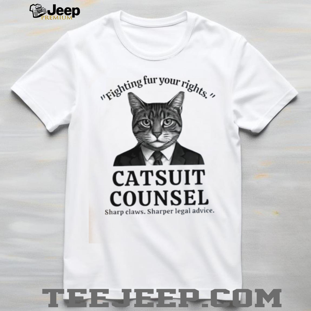 (Catsuit Counsel Fighting Fur Your Rights Funny Lawyer Cat Pun Graphic T Shirt)May 02