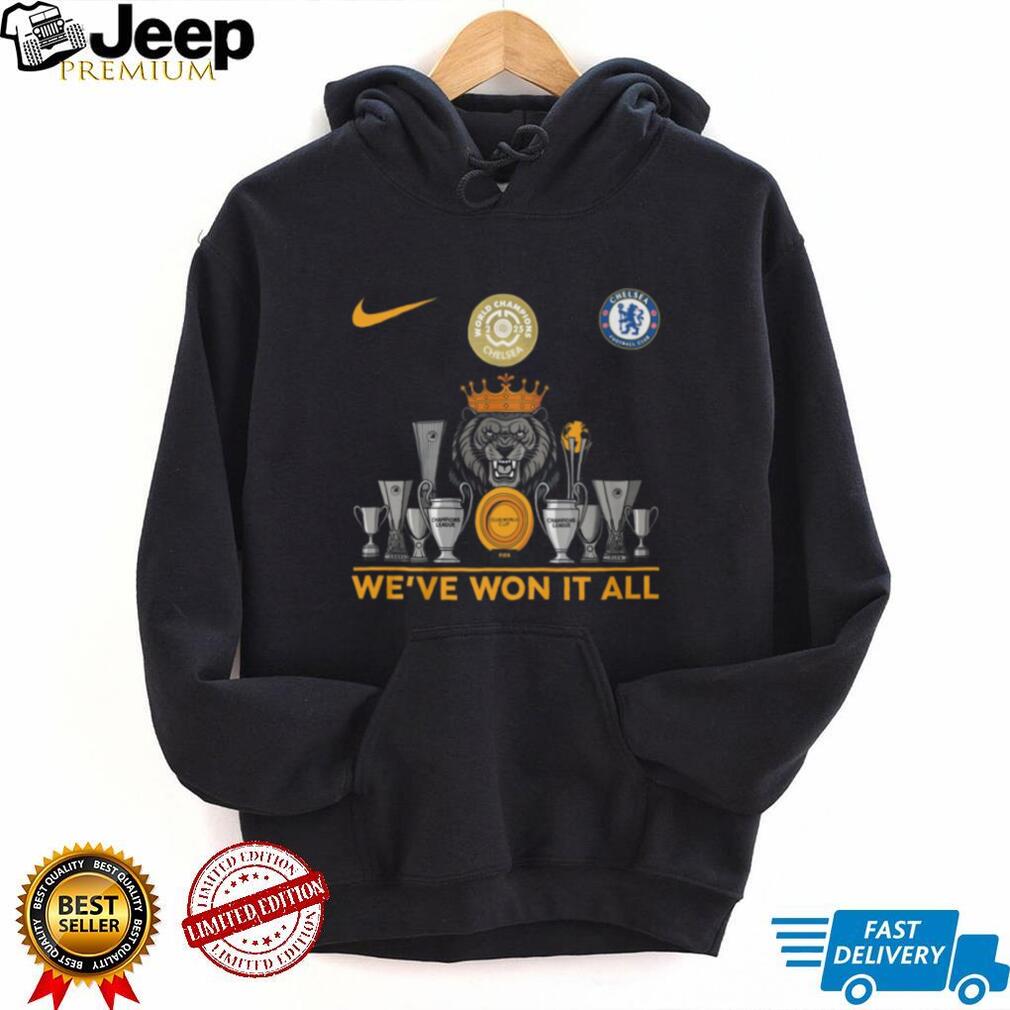 ()Chelsea FC We’ve Won It All Trophy Collection Lion Crown T Shirt, Treat yourself or make a great gift for your loved ones