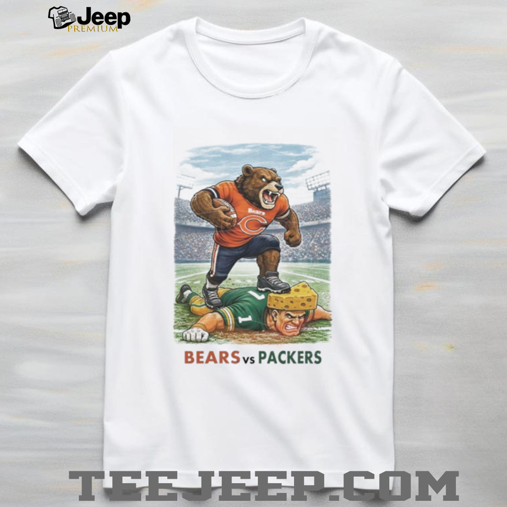 (Chicago Bears Mascot Stepping on Green Bay Packers Cheesehead Football Rivalry T Shirt)Chicago Bears Mascot Stepping on Green Bay Packers Cheesehead Football Rivalry T Shirt, Treat yourself or make a great gift for your loved ones