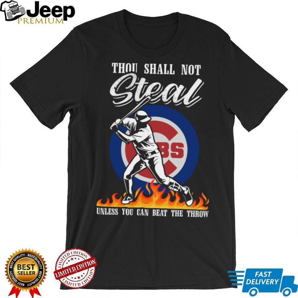 Calling all Chicago Cubs faithful! Are you ready to show your love for the North Siders with a bit of baseball humor? This “Thou Shalt Not Steal” T-shirt is the perfect way to do it. Imagine the chuckles and nods of approval as you sport this tee around Wrigleyville or your local sports bar, showing everyone you’re a true Cubs fan with a playful side.